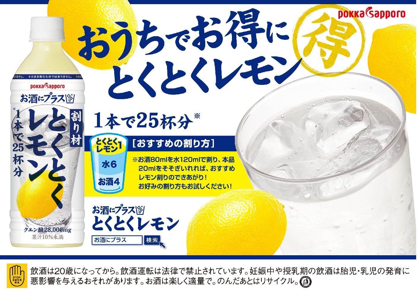 【新春セール】ポッカサッポロ お酒にプラス とくとくレモン 500ml