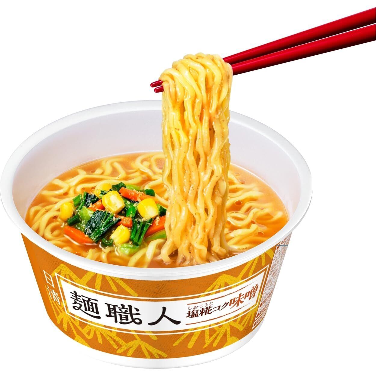 「日清麺職人 味噌」は、「信州米味噌」をスープに使用し、塩糀のまろやかなコクや芳醇なごまの香り、野菜などの旨みをきかせました。旨みとコクをアップすることで、さらに濃厚な味わいのスープになりました。