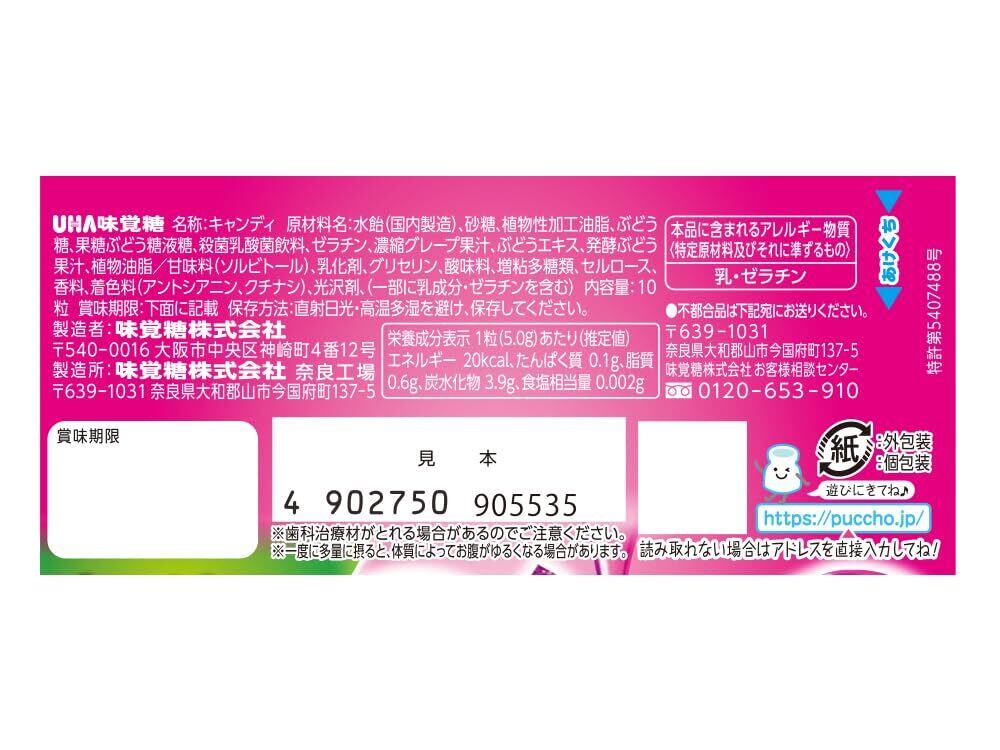 味覚糖 ぷっちょスティック ぶどう 10粒×10個