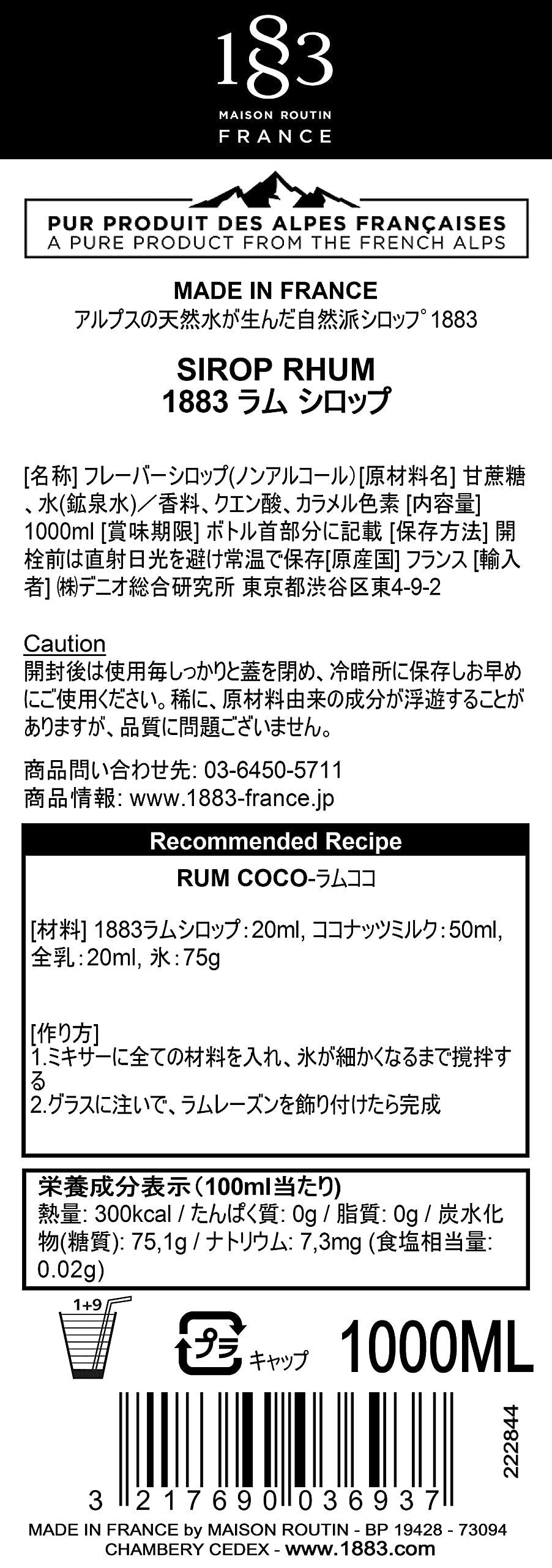 【人気商品】1883 Maison Routin (メゾン・ルータン) ラム シロップ 1000ml 【割り材・調理】