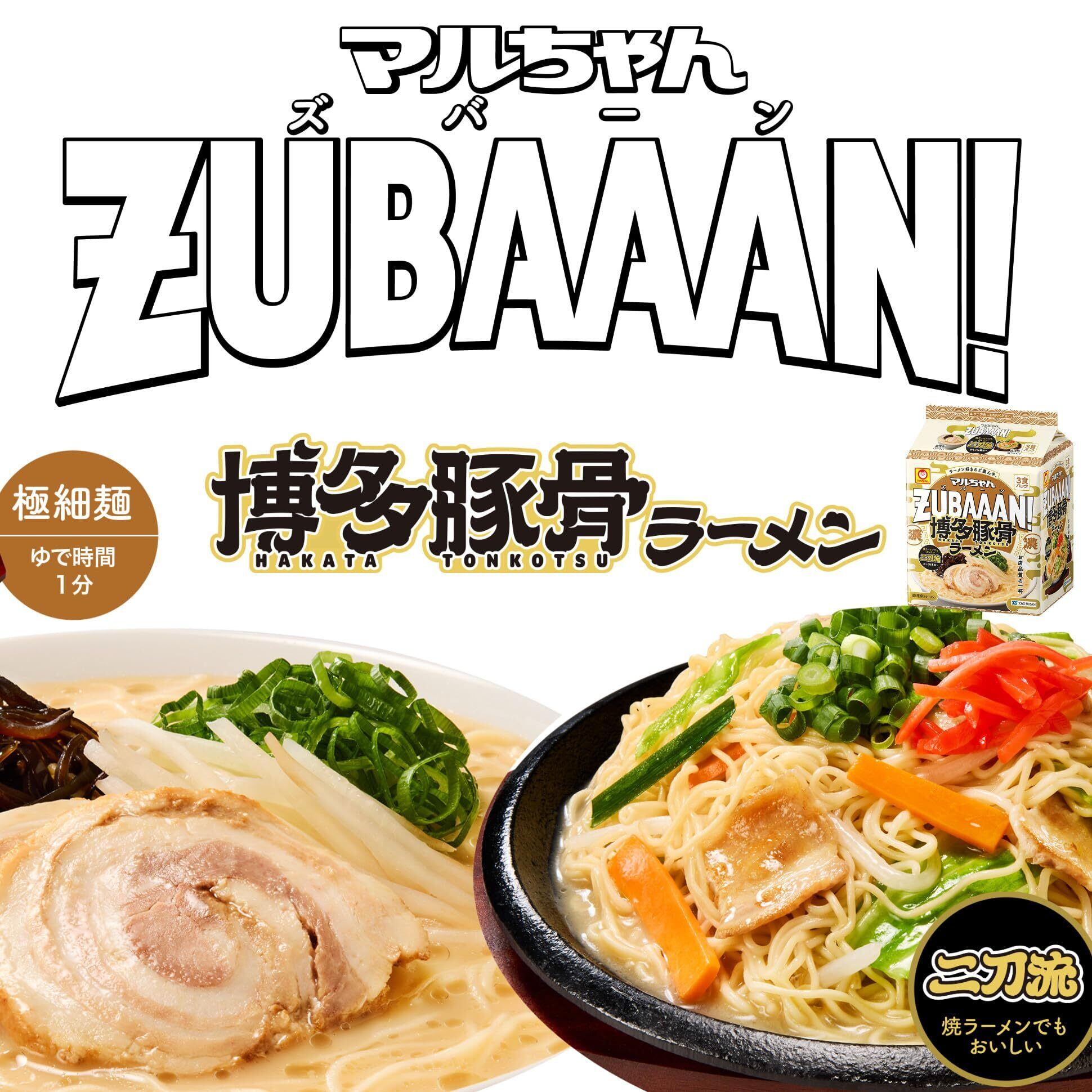 【在庫処分】マルちゃん ZUBAAAN! 博多豚骨ラーメン 3食パック (121g×3食パック×9個 計27個 / 袋麺) 即席 インスタントラーメン ラーメン 箱買い 東洋水産 ズバーン