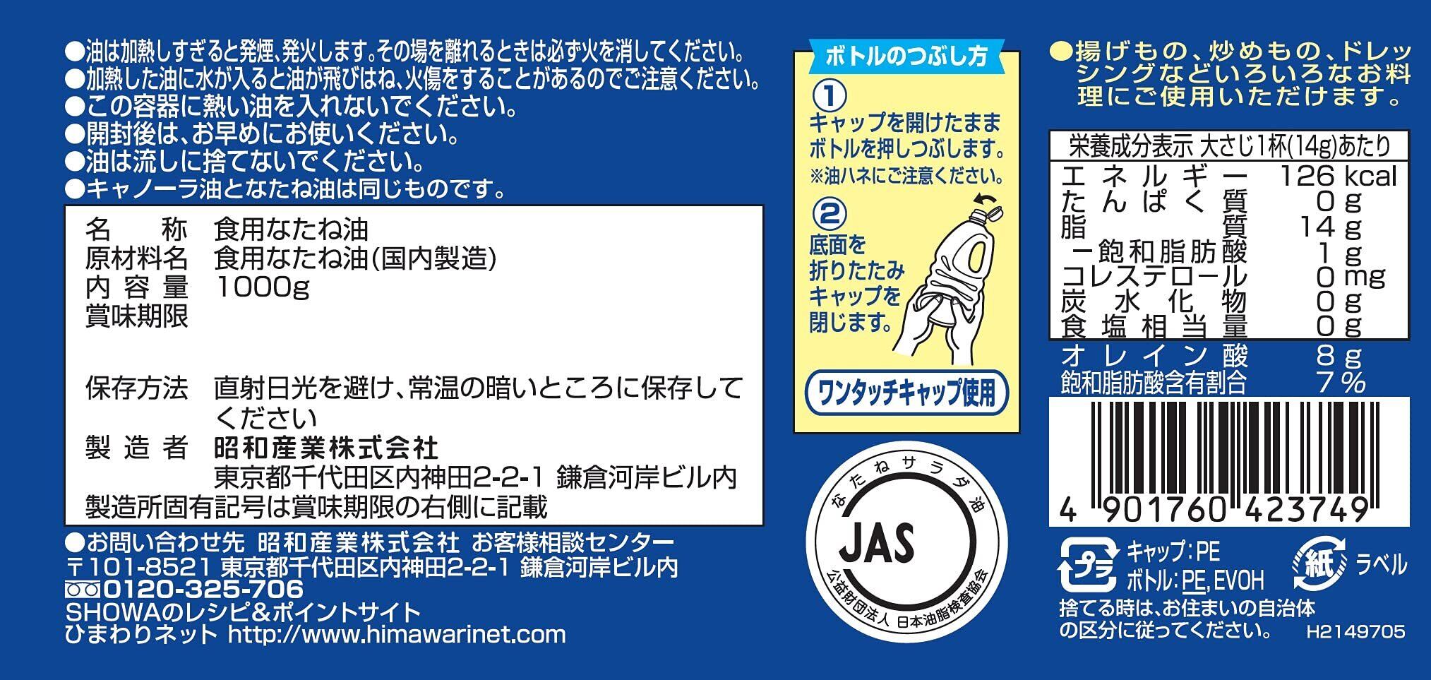 【特価商品】昭和産業 キャノーラ油 1000g×2個
