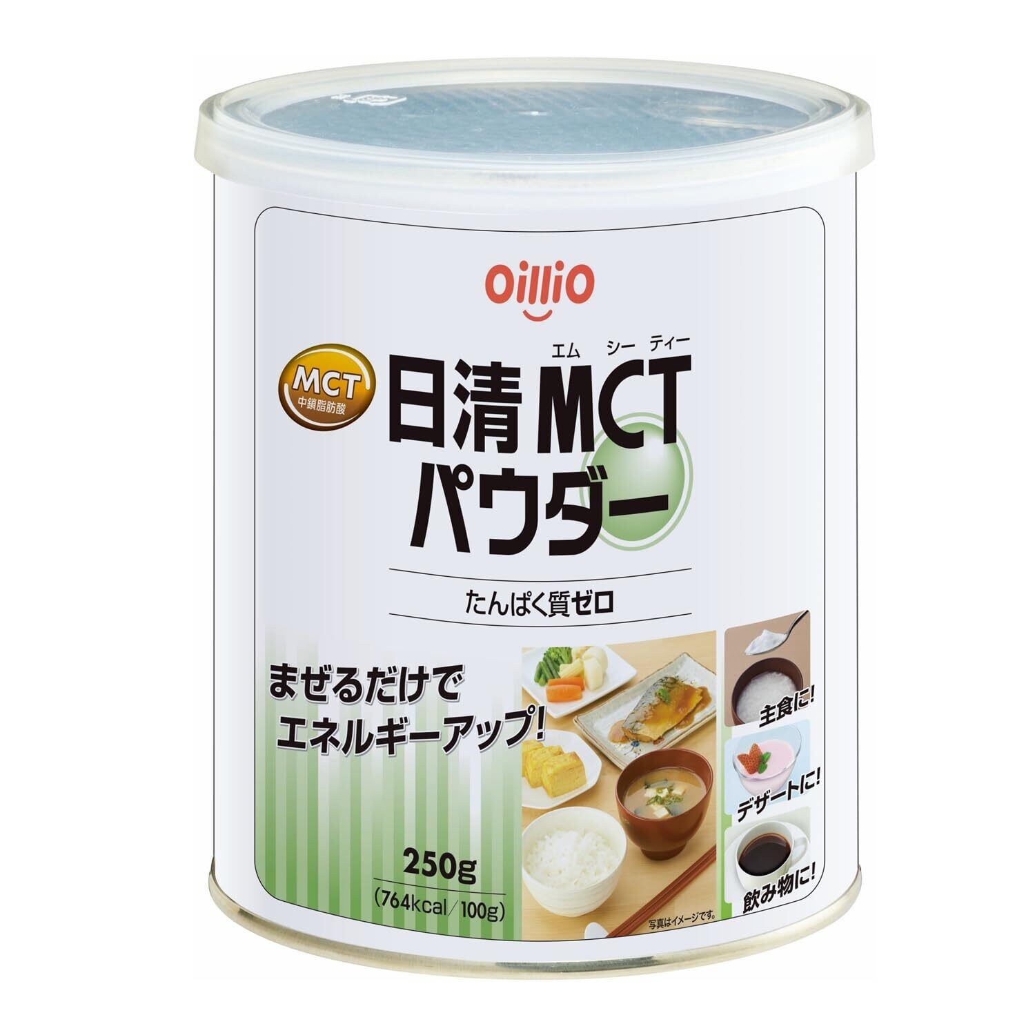 本品は、MCTを様々な料理にかけたり、混ぜたりできるように粉末状にしたものです。