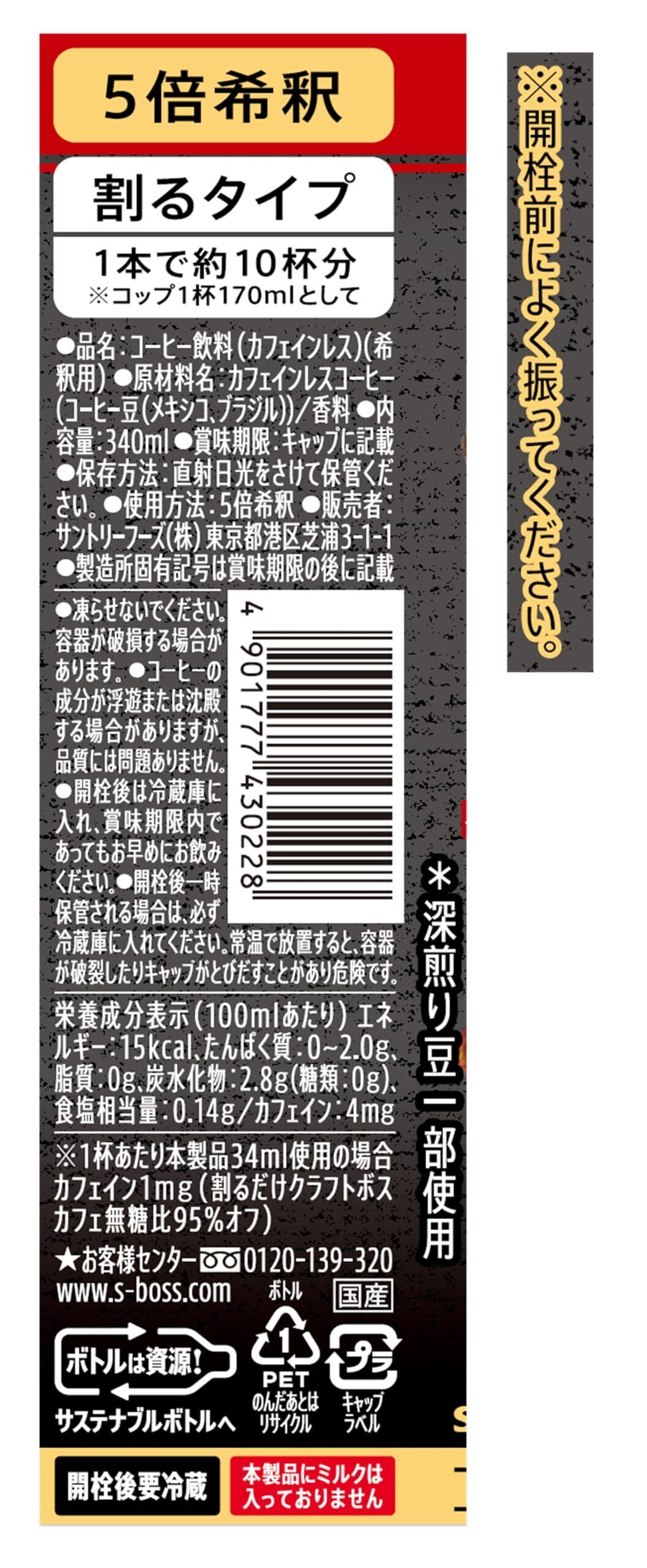【在庫処分】サントリー ボス BOSS 割るだけクラフトボスカフェ 深煎りカフェインレス無糖 濃縮 コーヒー 希釈 340ml×24本