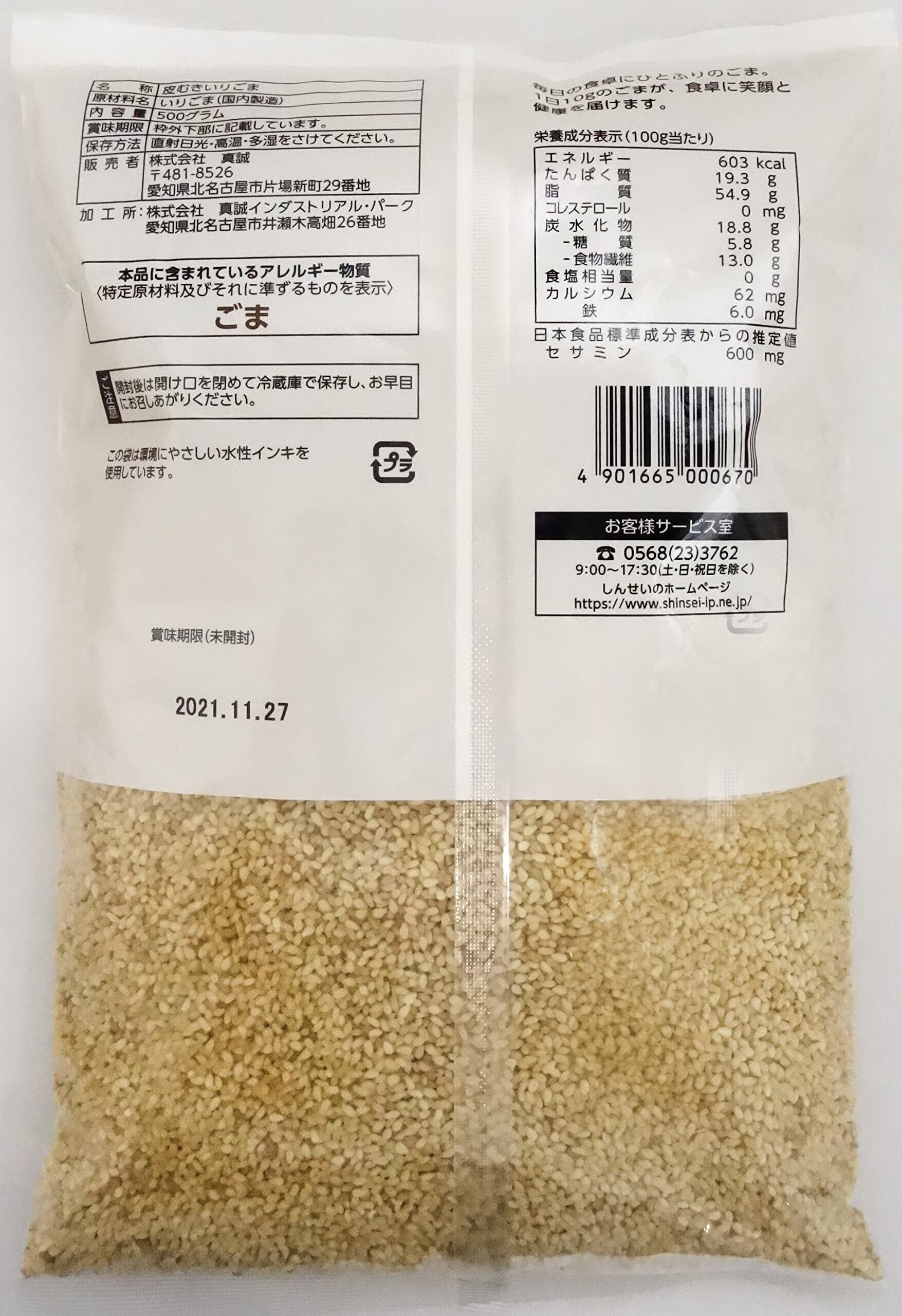 【在庫セール】真誠 皮むきタイプいりごま 500g