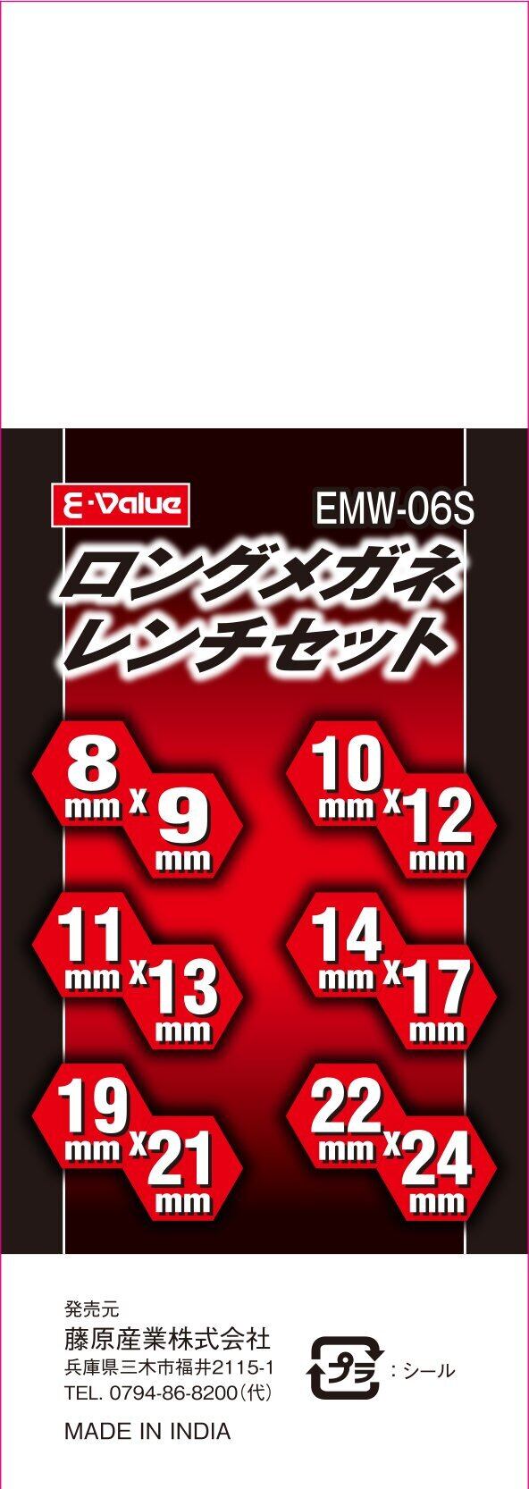 【在庫セール】イーバリュー(E-Value) ロングメガネレンチセット ミリサイズ 6本組 EMW-06S