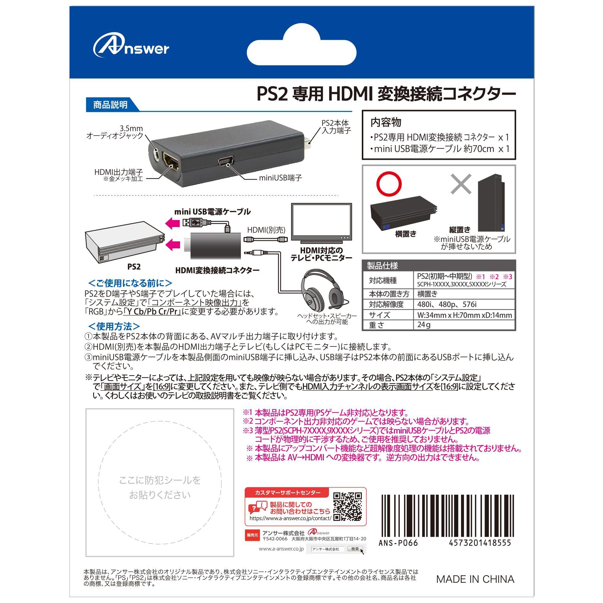アンサー PS2専用 HDMI変換接続コネクター 【AVマルチ出力端子をHDMIに変換/映像がキレイに/3.5mmオーディオジャック搭載/HDMI出力端子金メッキ加工】