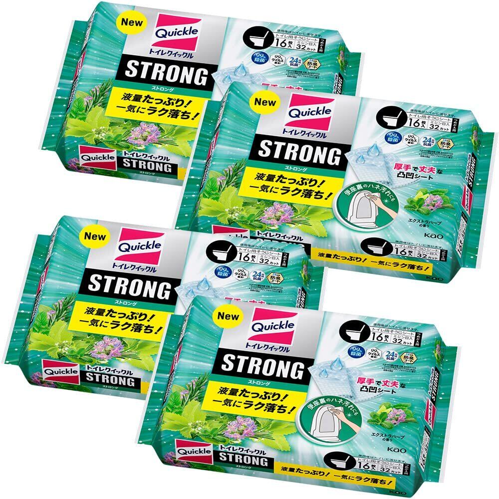 【数量限定】クイックル 【まとめ買い】トイレクイックルストロング トイレシート ワイプ 液量たっぷり! 便座裏のハネ汚れも一気にラク落ち! エクストラハーブの香り 替え16枚×4個