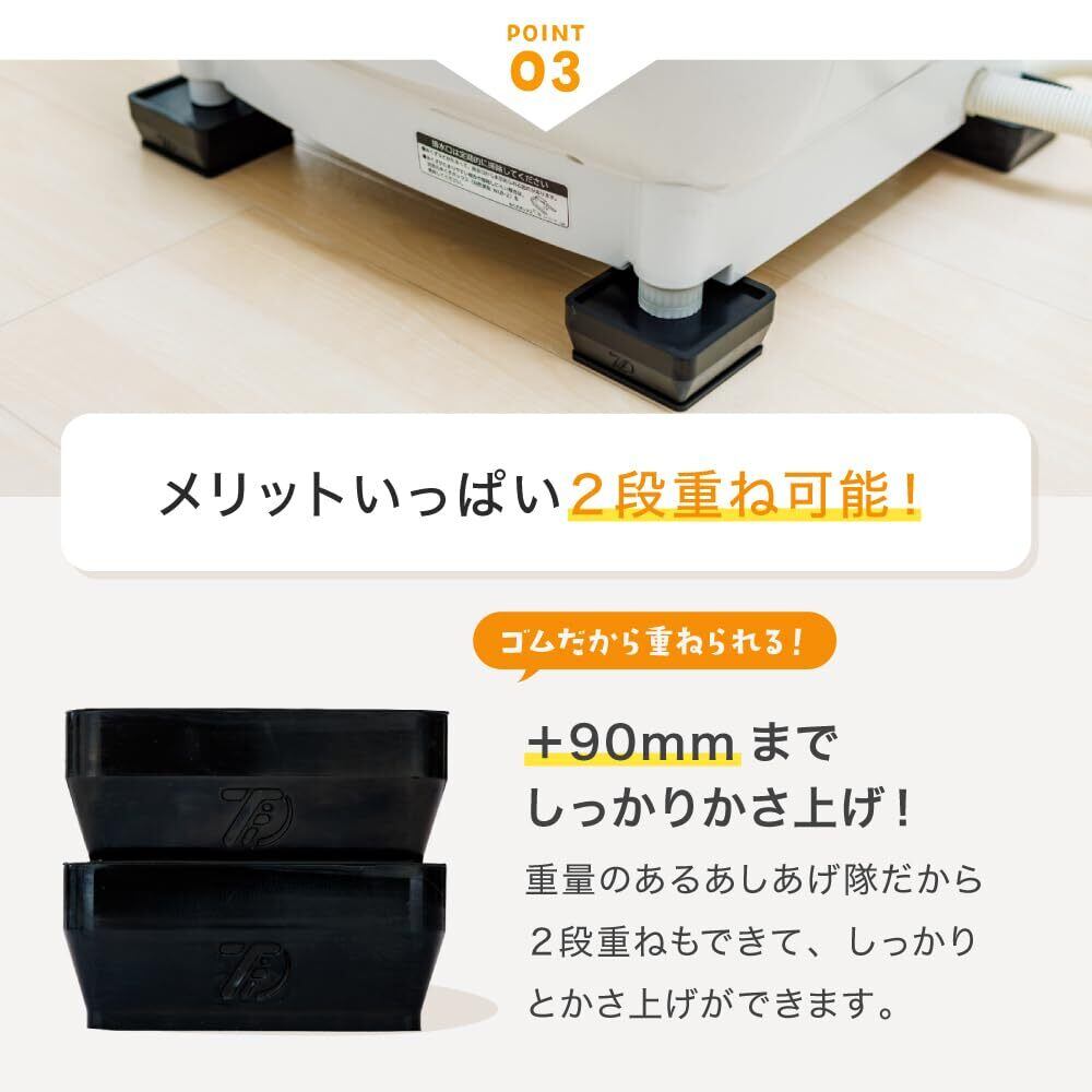 タツフト 洗濯機用かさ上げ台 防振防音 高さ調整ゴムマット あしあげ隊 4個入り TFi-5505