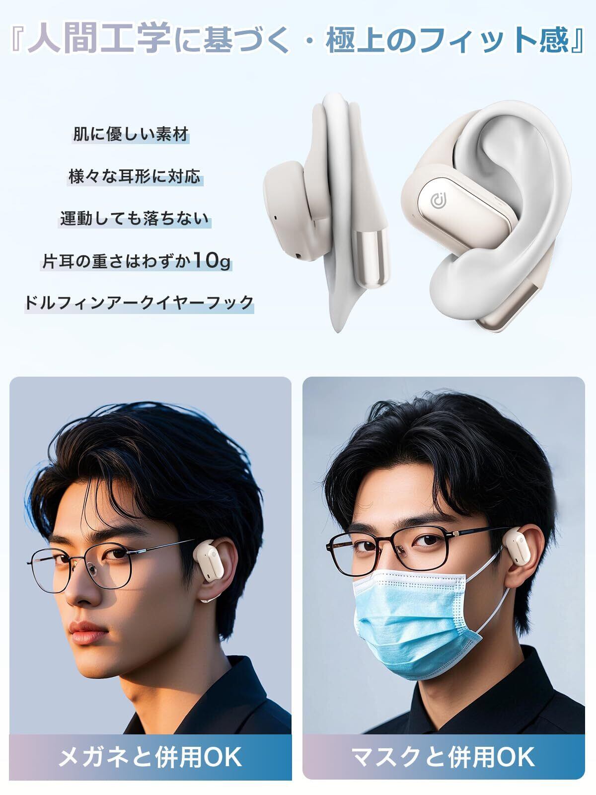 【新次元のオープンイヤー ワイヤレスイヤホン・音漏れ無し】 Earaku (イアラク) ワイヤレスイヤホン 超軽量 耳を塞がない 耳掛け式 究極のフィット感 イヤフォン 骨伝導 の革新版 DSP機能 オープンイヤーヘッドホン 業界トップ音質 指向性音伝送技術 日本語音声 Bluetooth5.3/マルチポイント接続/ENC通話ノイズリダクション (ホワイト)