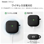 【在庫セール】Inesore for AirPods 4 ケース(第4世代)エアーポッズ 4 ケース ソフトシリコン カラビナ付き & せいじょうペン装備 全面保護 耐衝撃 紛失防止 男性と女性For Airpods 4 case(アクティブノイズ キャンセリング搭載)-ブラック