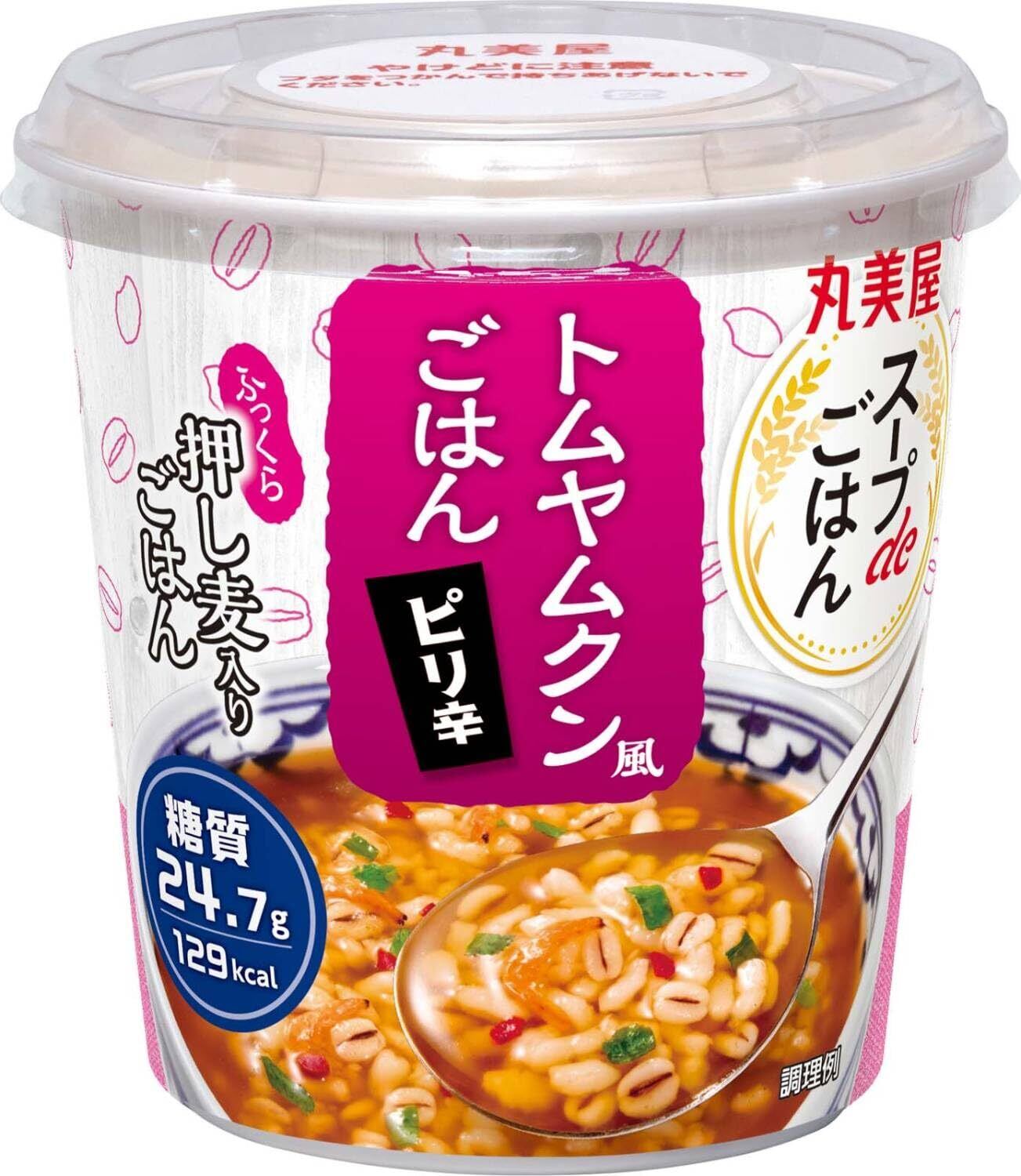 ・丸美屋独自の“ふっくら製法"で作った「押し麦入りごはん」と、「こだわりのスープ」がセットになった商品です。