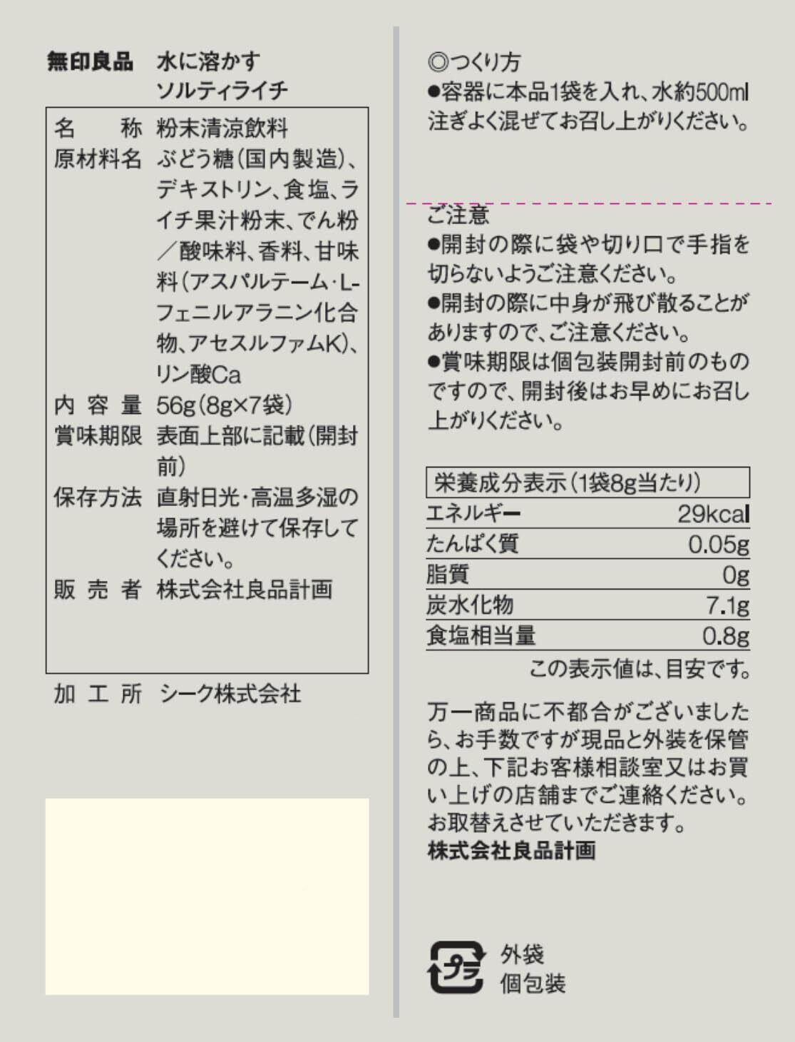 【在庫セール】無印良品 水に溶かす ソルティライチ 500ml用8g×7袋 VBB69A4S