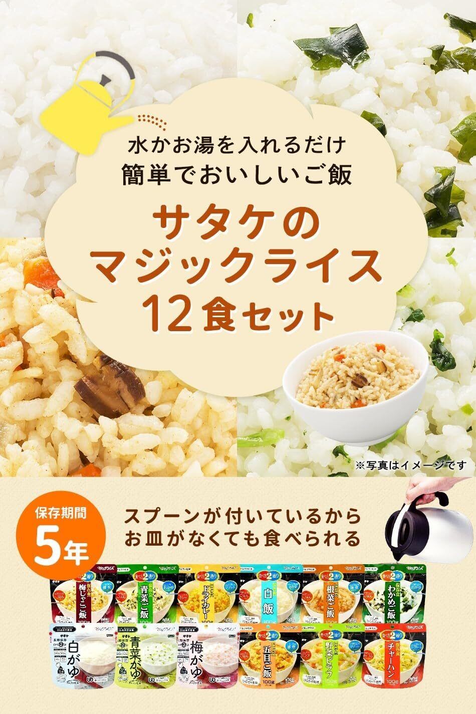【人気商品】保存食セット サタケ の マジックライス 12食 セット/食べ比べ お試し 味比べ 非常食 非常食セット 保存食 ご飯 国産 米 アルファ米 アルファ化米 水 お湯 おかゆ 粥 お粥 災害 防災グッズ 備蓄 防災食 1人用 一人用 常温 保存 サタケ セール ポイント消化 ギフト レトルト 食品 保存食品 5年保存 2人用 3人用 保管 常温