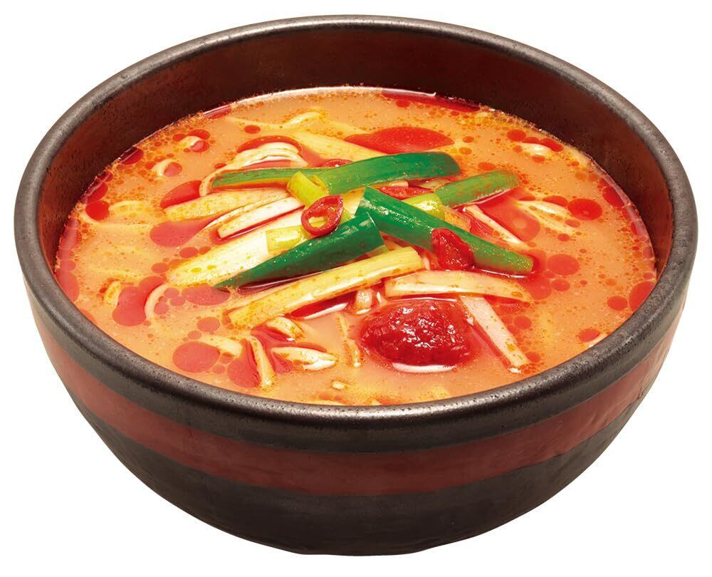 めん(小麦粉(国内製造)、食塩、大豆食物繊維)、スープ(みそ、糖類、たん白加水分解物、ニンニクペースト、植物油脂、ポークエキス、食塩、動物油脂、豆板醤、香辛料、コチュジャン、タマネギペースト、食用風味油)、かやく(ねぎ、糖類、唐辛子、でん粉)/加工でん粉、調味料(アミノ酸等)、酒精、乳化剤、カロチノイド色素、増粘剤(加工でん粉、キサンタン)、カラメル色素、香辛料抽出物、かんすい、酸化防止剤(ビタミンE)、(一部に小麦・ごま・大豆・鶏肉・豚肉・ゼラチンを含む)