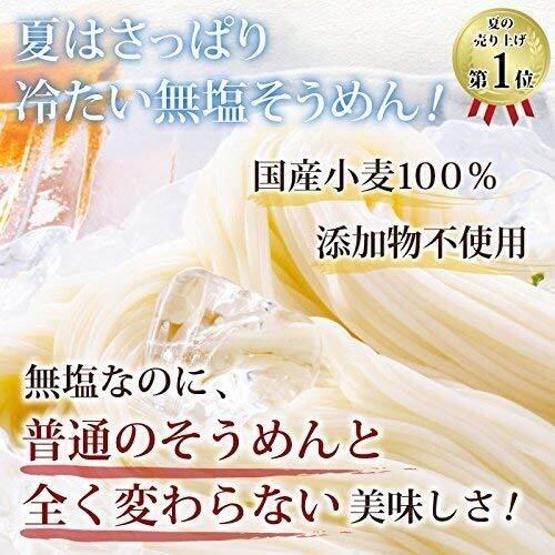 無塩そうめんにも関わらず、従来のそうめんと変わらずしっかりしたコシで美味しいそうめんです。