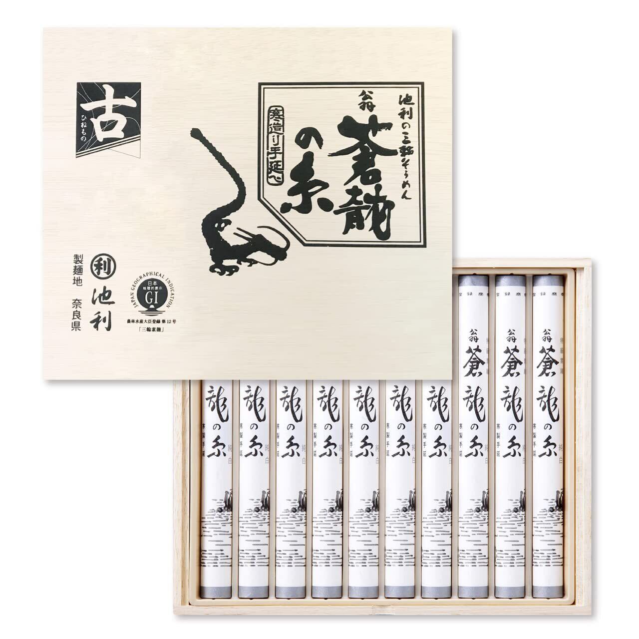 池利 三輪そうめん 翁 蒼龍の糸 10束 500g 木箱 贈答用 ギフト