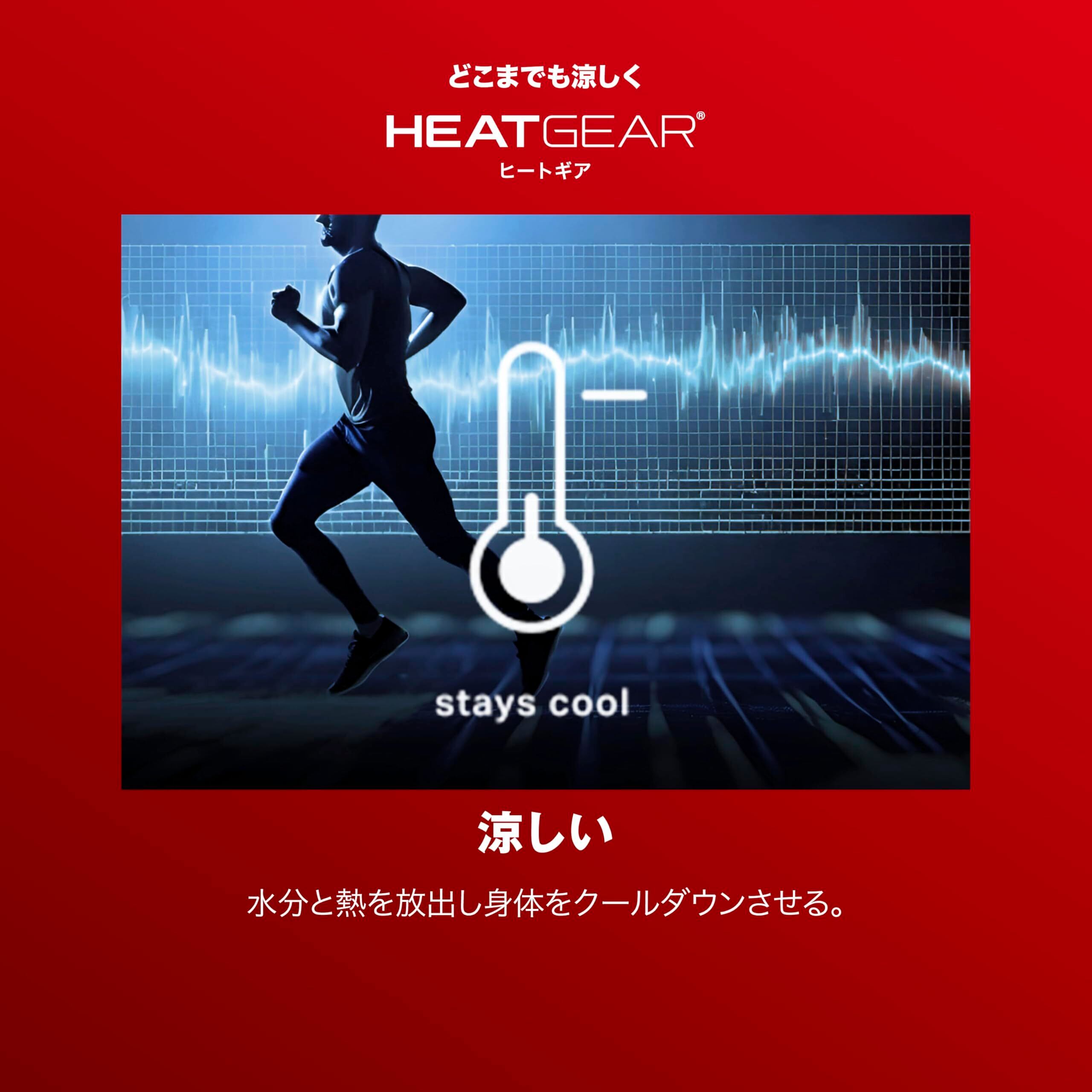 HEATGEAR ARMOUR(ヒートギアアーマー):吸汗速乾性と伸縮性に優れたファブリックにより、酷暑時でも涼しく、身体をドライで快適に保つ