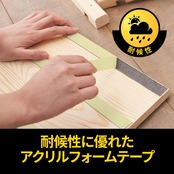 合板・ベニア板の凸凹面の接着に! 耐候性に優れたアクリルフォームテープです。