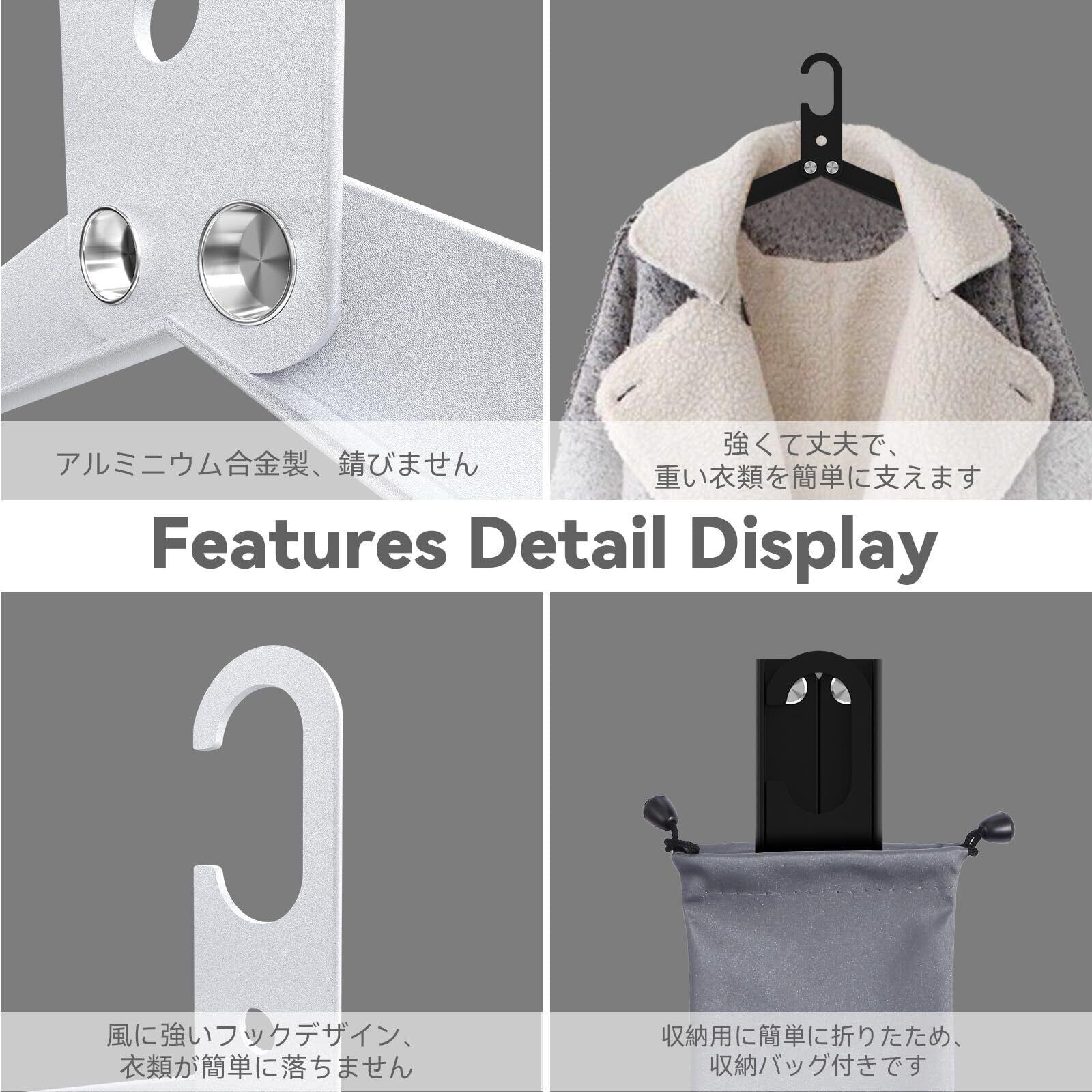 Sazfli 折りたたみ旅行ハンガー 3個セット(アルミニウム合金製)– 超軽量・耐風フック付 収納ポーチ&ギフトBOX入り – コンパクト設計 、ブラック