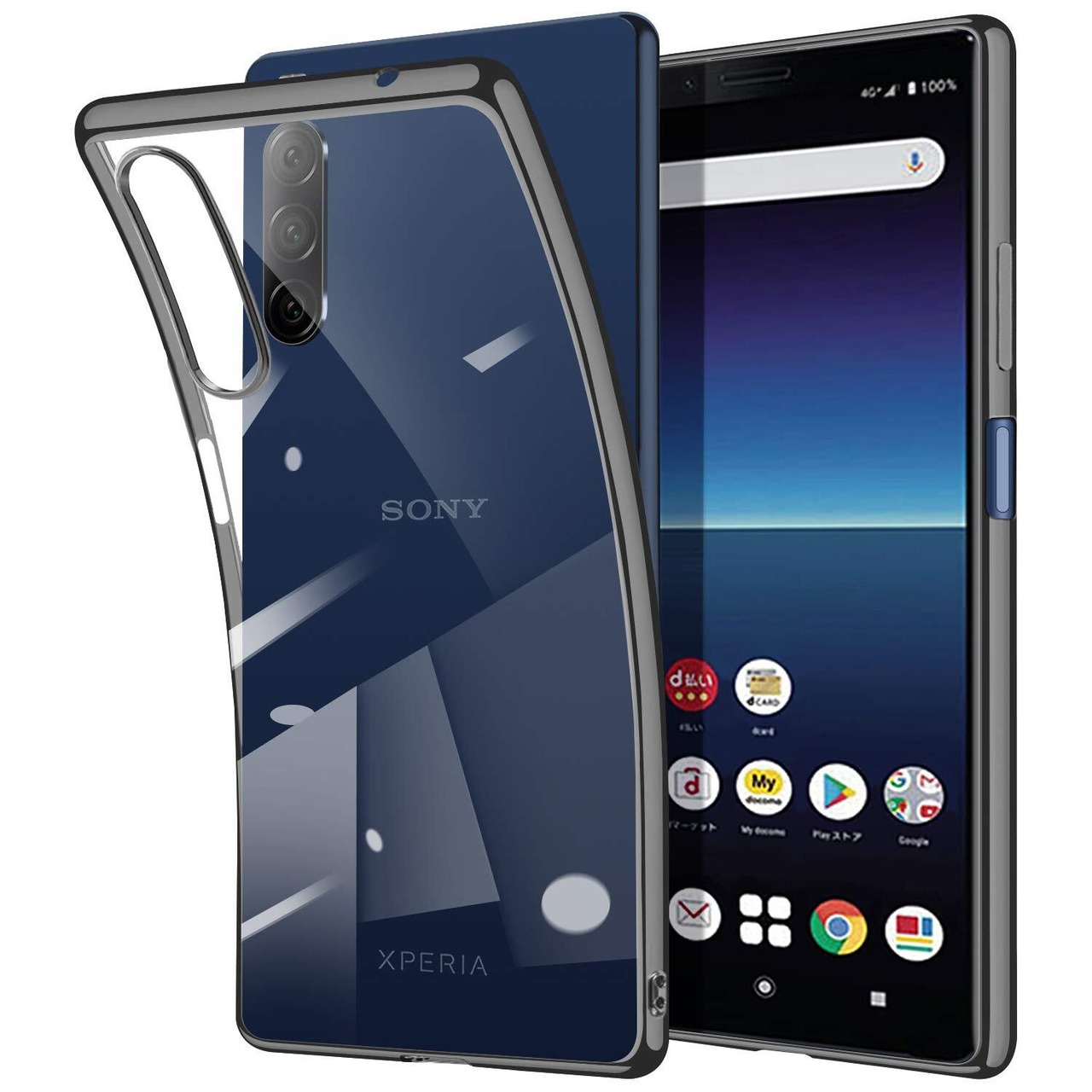 【数量限定】Xperia 10 II ケース so-41a カバー クリア 透明 耐衝撃 スリム TPU 薄型 シリコン 擦り傷防止 黄変防止 メッキ加工 ストラップホール付き Xperia10 II SOV43 カバー (ブラック)