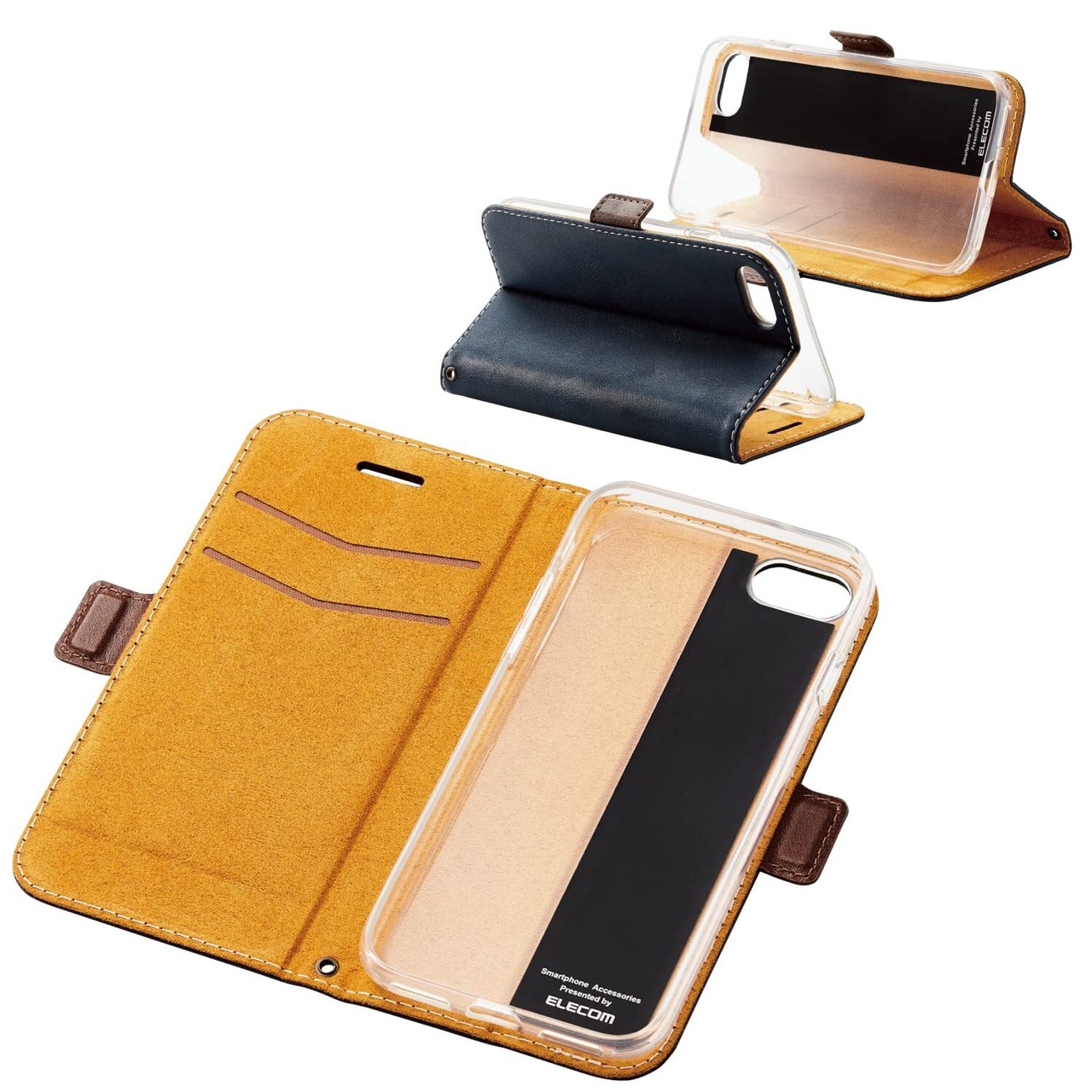 ●便利な機能を搭載した、革のようなやわらかな風合いのiPhone SE 第3世代、iPhone SE 第2世代、iPhone 8、iPhone 7用ソフトレザーケース(手帳型)です。●本体装着部分に衝撃を吸収するTPU素材を使用し、機器本体を衝撃から守ります。●本体装着部分は機器本体のカラーをいかせるクリアタイプです。●コーナーにエアークッションを使用し、耐衝撃性を高めています。●マグネット付きフラップなので、簡単に開け閉め可能です。●受話口付きフラップなので、フラップを閉じたまま通話が可能です。●未使用時に液晶画面部分をカバーする横開きタイプのフラップが付いています。●内側に2つのポケットが付いており、カードや名刺、メモなどの収納に適しています。●背面を折り曲げることでスタンドとして使用でき、動画視聴などを快適に楽しめます。●カードを出し入れすることなく、そのままICカードを使用可能です。●※フラップを開いてご使用ください。●ケースを装着したままで、純正の各種ケーブルの接続や写真撮影、ボタンの操作が可能です。●ストラップの取り付けができるストラップホールが付いています。●※本製品にストラップは付属していません。●本製品はワイヤレス充電に対応しています。●※お使いの充電器や環境によっては正常に充電できない場合があります。