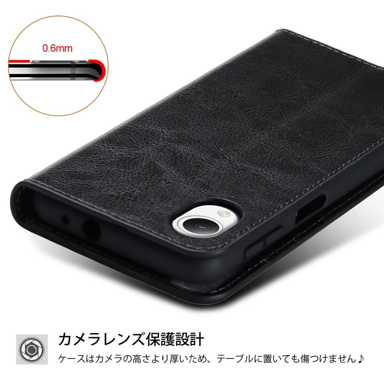 【機能性①】:シンプルでシックなデザインで、場所問わず長くご愛用いただける手帳型です。丈夫で、汚れ防止と摩擦耐性を持つスマホケースです。