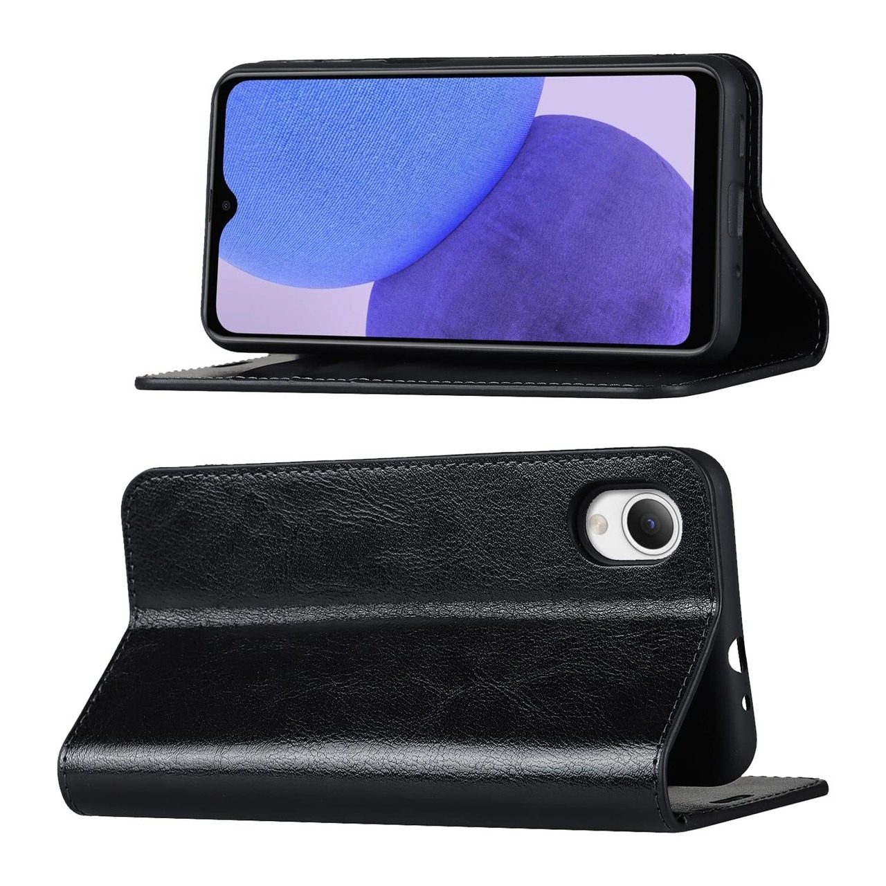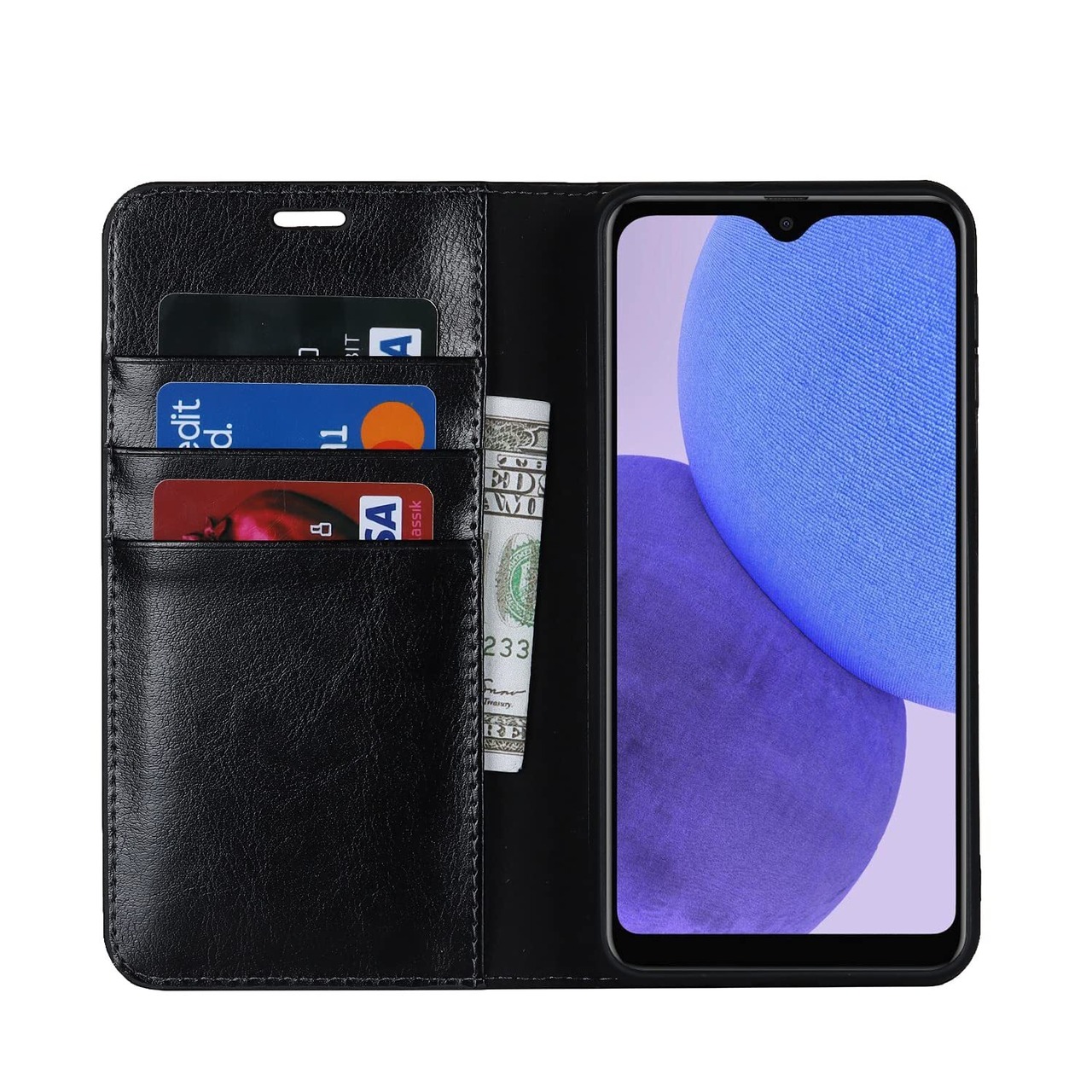Galaxy A23 5G ケース 手帳型 日本版 【 マグネット無し 】 耐衝撃 カードケース ドコモ docomo SC-56C ケース au SCG18 ケース SIMフリー 全対応 サムスン ギャラクシー A23 5G カバー A23 ケース galaxy SC56C ケース A235G スマホケース A23ケース 手帳ケース 適用 CASE 【iCoverCase】 マグネットなし スタンド機能 光沢加工 牛革 レザー 財布型 カード入れ ブラック