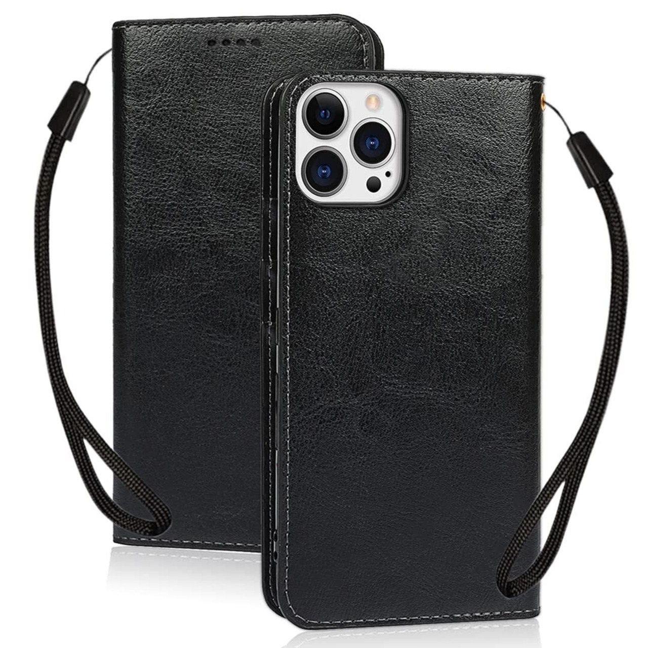 iPhone 14 Pro Max ケース 手帳型 【ハンドストラップ付】 適用 アイフォン14プロマックス スマホケース iPhone14promax カバー ケース アイフォン 14 プロ マックス 手帳型ケース アイホン 14プロマックス ケース 【Heofuixt】 レザー スタンド ストラップ カード入れ 内蔵マグネット 弱磁 落ち着いた ブラック