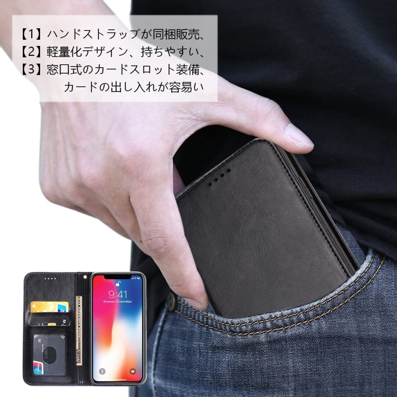 【機能性②】:マグネット内蔵式のケースです、本体使用上の安全確保のため、磁力が適当に弱く設置しておきました。留め具なし、指への支障もなく、シンプルなデザイン感がよりアップさせます。手触り良いPUレザー+内部の柔軟なTPUカバーという二重保護で、衝撃吸収の性能が抜群、万が一の落下した時、大切なスマホ本体をしっかり守ることができます。