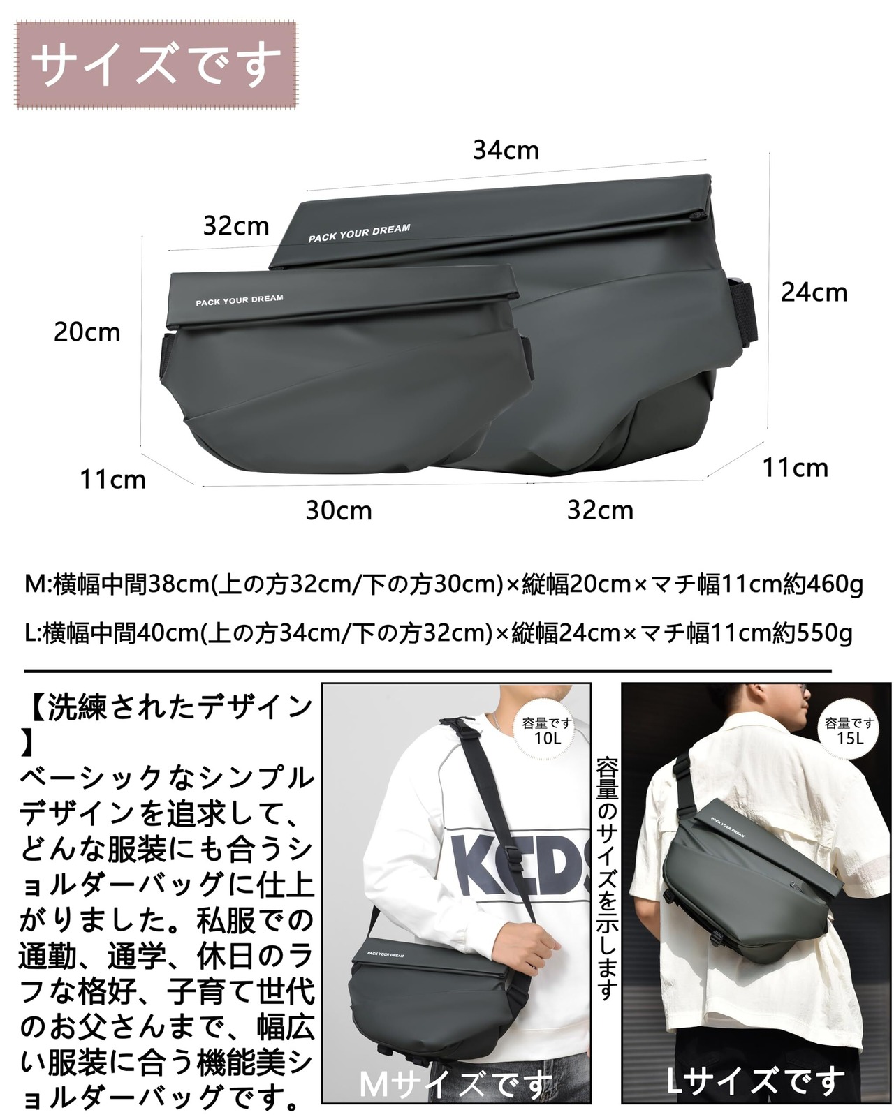 【2022最新】FSD.WG ボディバッグ 大きめ メンズ 斜めがけ ワンショルダーバッグ メッセンジャーバッグ ショルダーバッグ iPad収納可(L12.9インチ;M9.7インチ)大容量 軽量 通勤 通学 旅行 アウトドア 人気