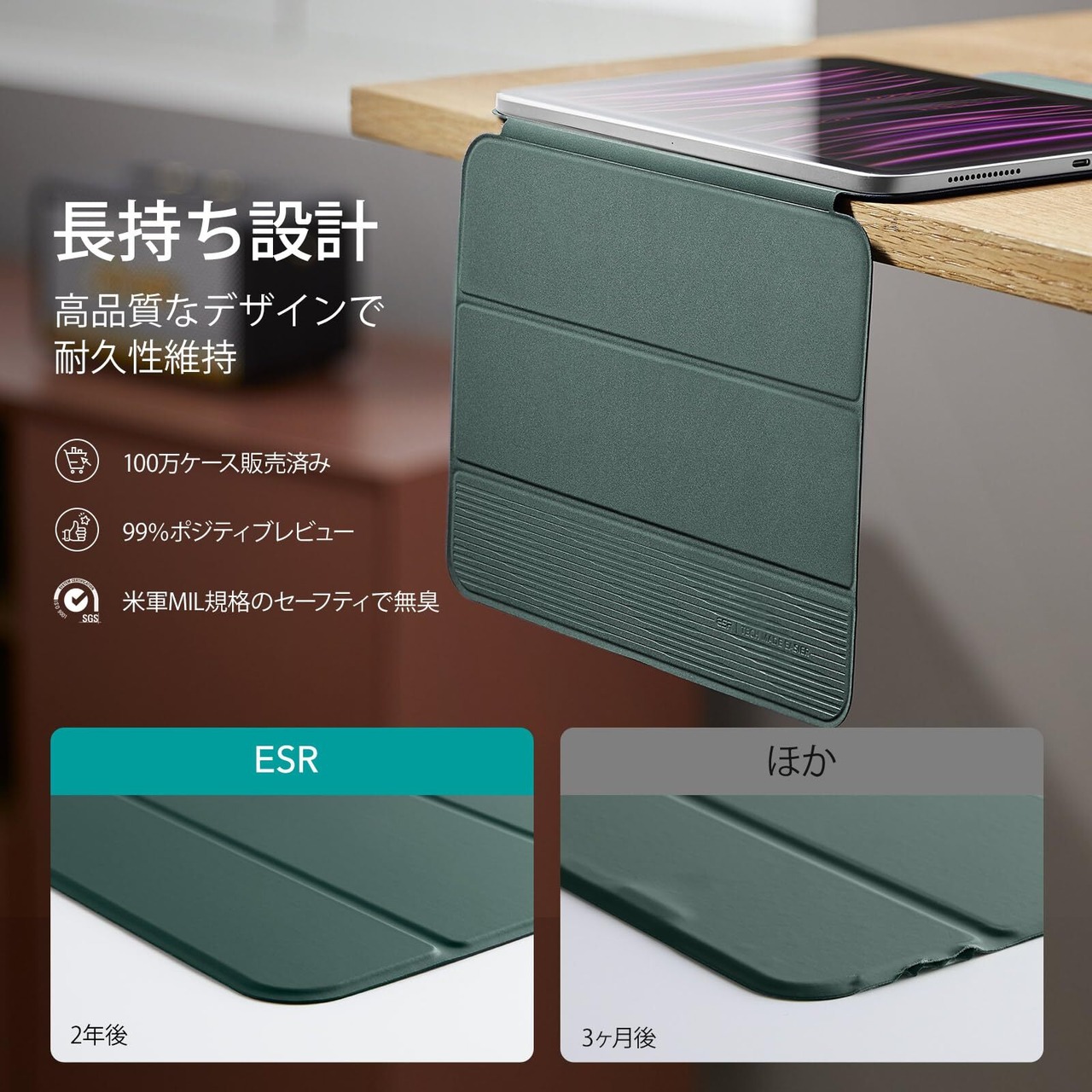 【新春セール】ESR iPad Pro 12.9 ケース (2022/2021/2020、第6/5/4世代) iPad Air 13インチ 専用カバー(2025/2024) マグネットス吸着式 Pencil2対応 三つ折りスタンド オートスリープ・ウェイク Rebound 磁気ケース グリーン