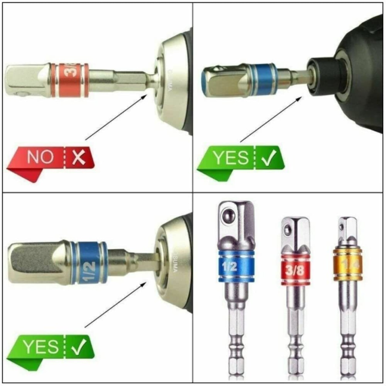 【多機能】スクリュードライバー、電動スクリュードライバー、電動ドリル、手動スクリュードライバーなどの六角ツールなど。不可欠な変換アダプター 工具。ソケットレンチと組み合わせて使用できます。DIY愛好家、車の修理などの分野の問題を解決します。