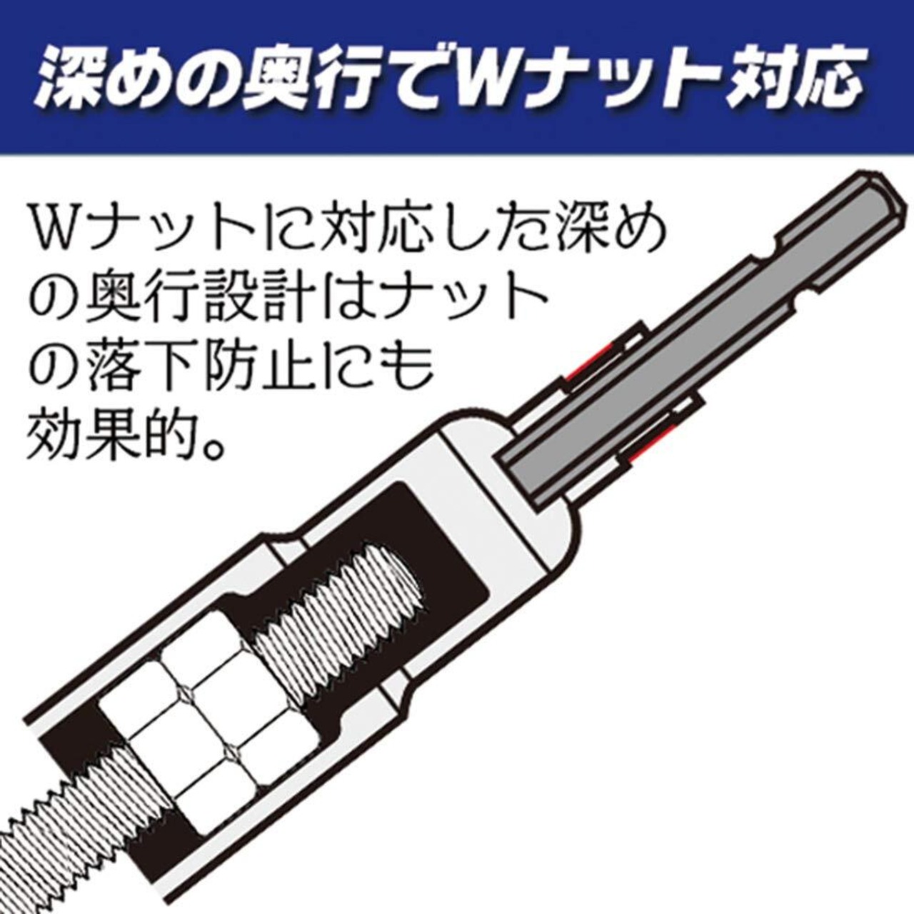 独自の12角深穴タイプにより、ボルトの締め付けや取り外しがスムーズに行えます。この設計は、力の伝達効率を向上させ、作業時間を短縮しますので、効率的な作業が実現可能です。