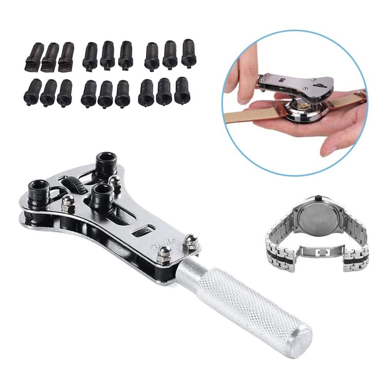 この工具は、特別に設計された三点支持方式を採用しており、大型腕時計の裏蓋開けに適しています。さまざまなサイズの時計に対応できるため、幅広いニーズにお応えします。また、力を均等に分配できるので、時計ケースを傷つける心配もありません。