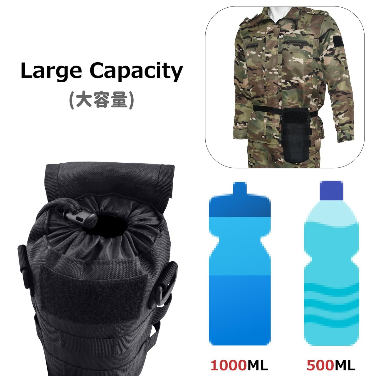 この水筒ポーチは、MOLLE(モール)システムに対応しているため、他の装備やバックパックに簡単に取り付けが可能です。必要な時に即座にドリンクを取り出せる使い勝手の良さがあります。