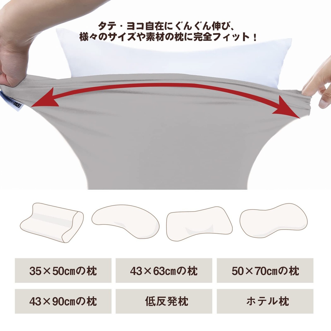 ◇上下左右どの方向にも伸びやすく、”のびのび” と全体が伸縮する枕カバー。様々なサイズと素材の枕にぴったるフィットします。肌着のようなさらっとした柔らかな肌触りに加え、●吸水・速乾 ●簡単装着の封筒式、●気軽に丸洗いOK、心地よい眠りに誘います【素材】 綿95% ポリウレタン5%【サイズ】 A:約35×50㎝の枕に適応 B:約43×63㎝ 50×70㎝の枕兼用 C:43×90のロング枕用