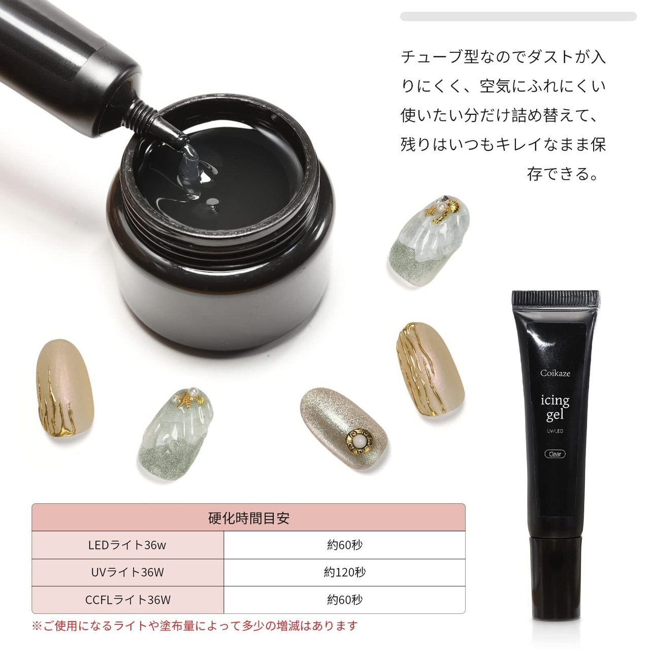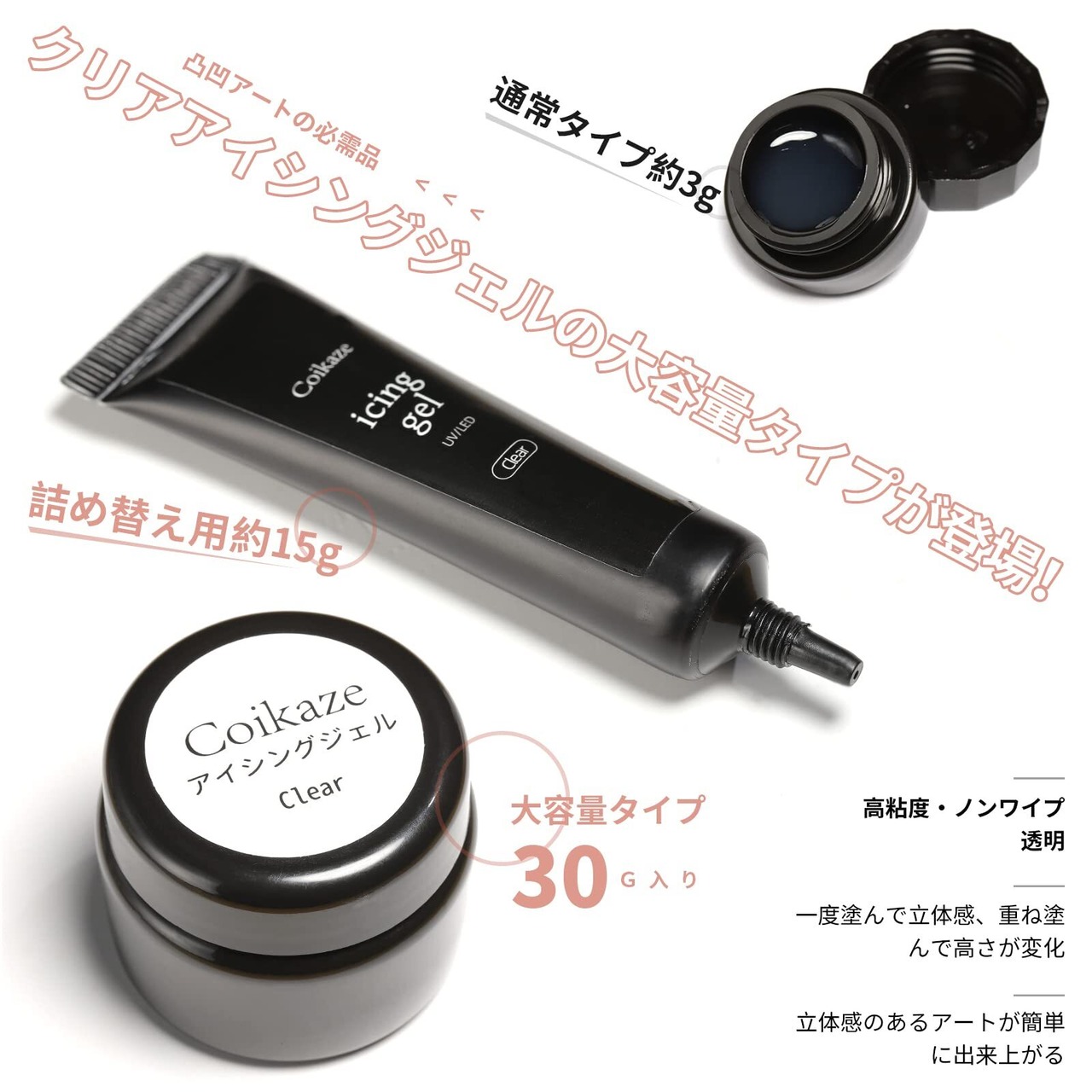 【新春セール】Coikaze ジェルネイル アイシングジェル 30g入り チューブ型付き 15g入り クリアジェルネイル 大容量 ノンワイプ クリアジェル パーツ固定ジェル UV/LEDライト対応