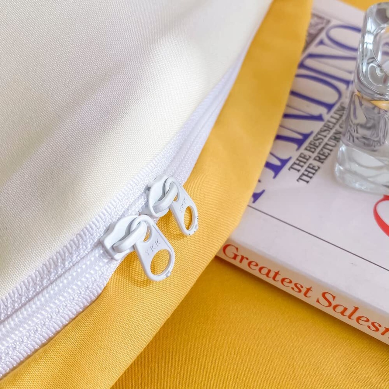 【2022最新】Ovege 布団カバー 3点セット シングル 掛け布団カバー ボックスシーツ 枕カバー 洋式・和式兼用 2方向ジッパー 100%マイクロファイバー ピーチスキン加工 洗い替え速乾タイプ (イェロー-クリーム シングル・3点セット)