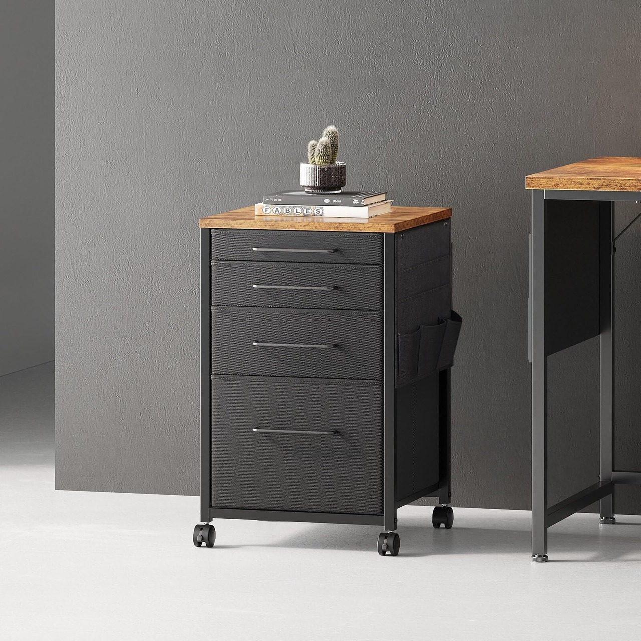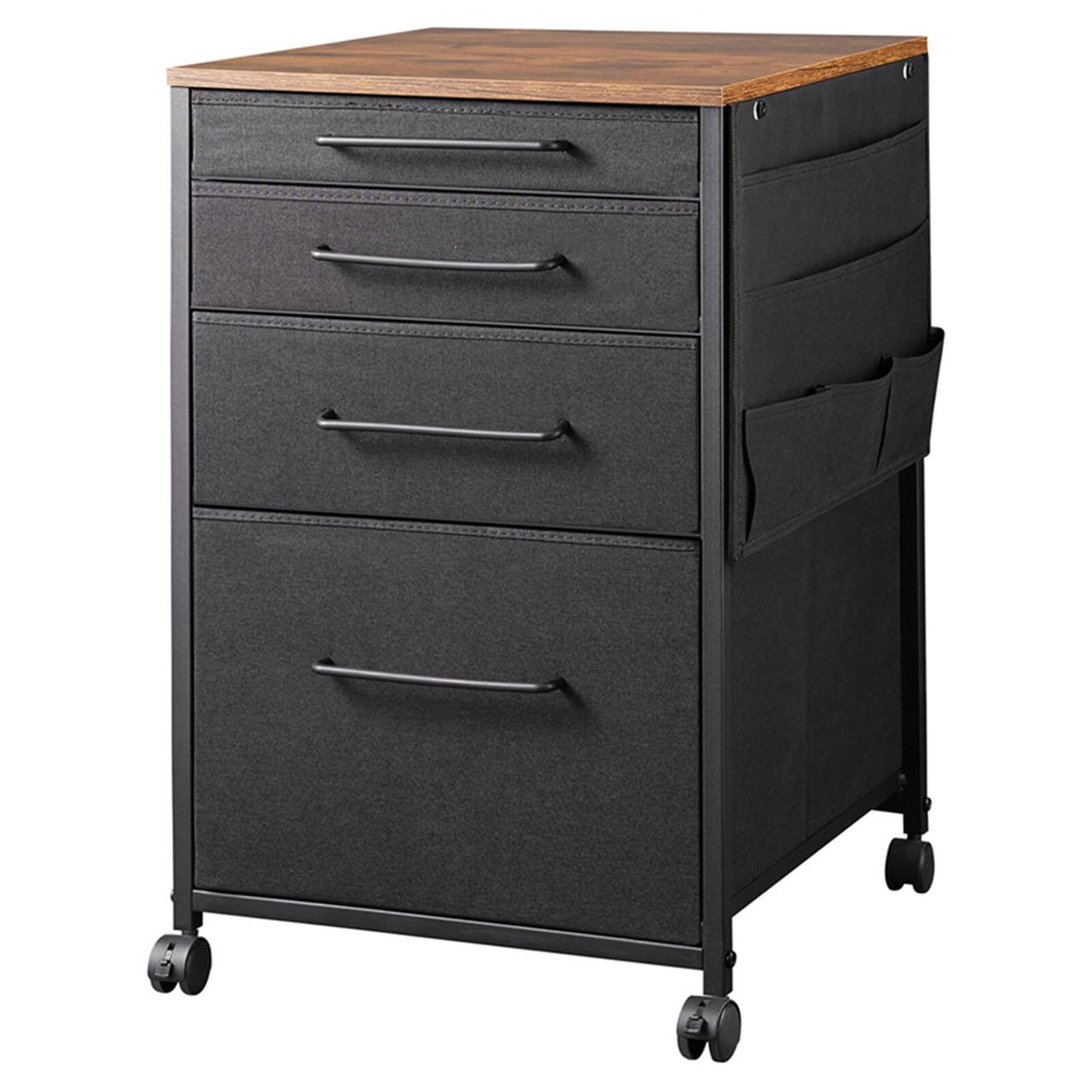 YeTom デスクワゴン キャビネット サイドチェスト オフィスワゴン 布製 袖机 サイドワゴン 4段 A4対応 大容量 キャスター付き デスク下収納 幅400*奥行400*高さ650mm 柜子 ビンテージ+黒い引き出し
