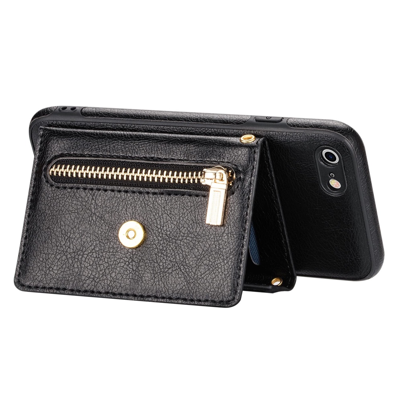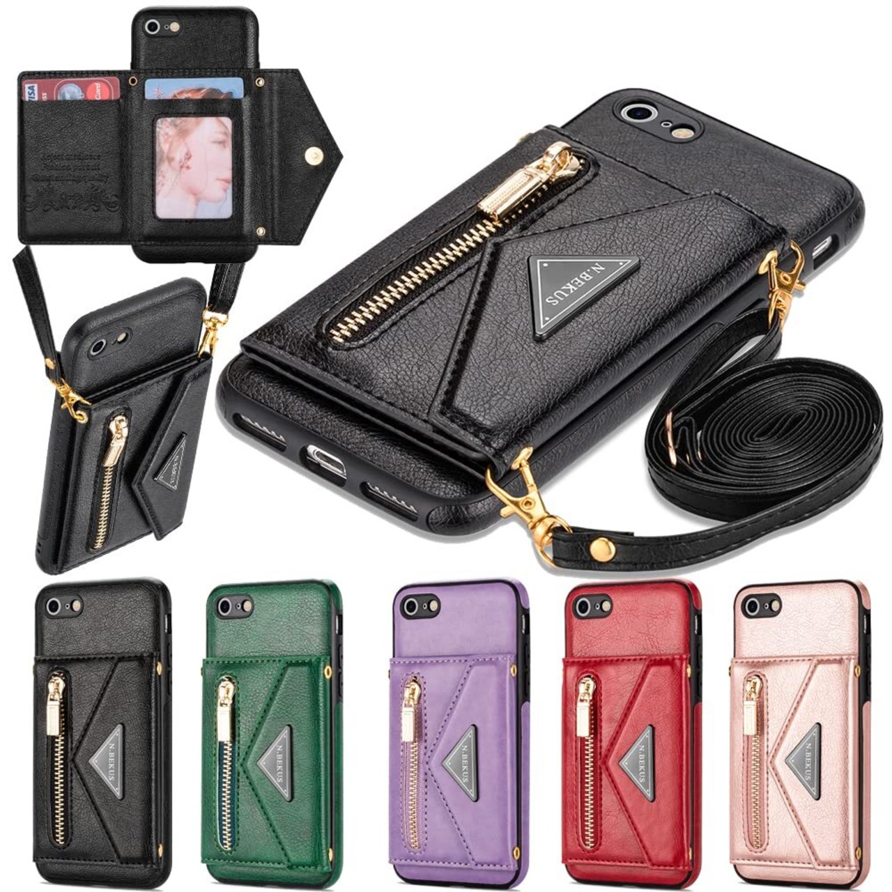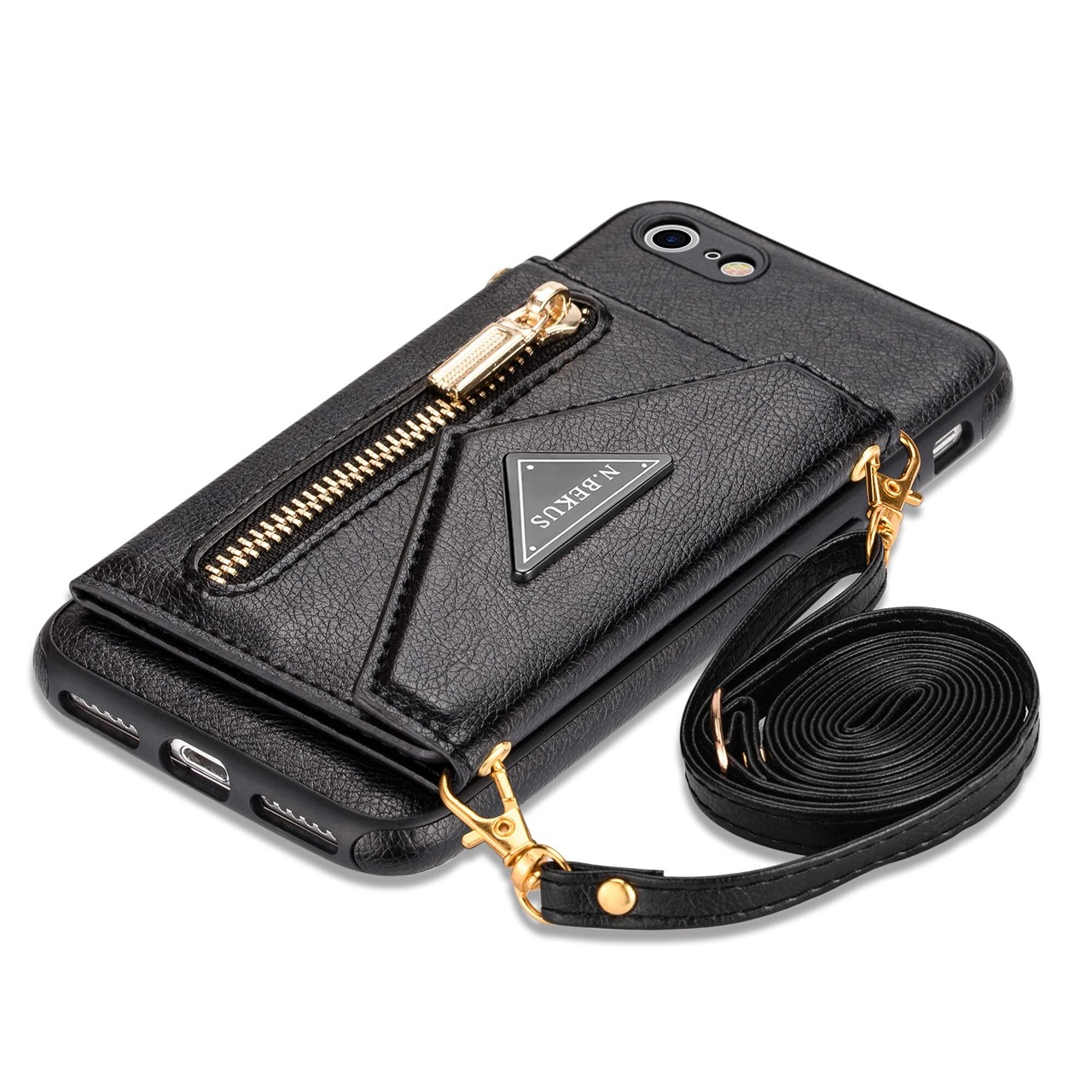 Eastwave アイフォン SE 2022 第3世代 / SE 2020 第2世代 ケース ショルダー クロスボディ手帳型 iPhone 8 7 縄掛けカバー 手帳 ケース CASE 長ストラップ 肩がけ 首掛け 斜め掛け チェーン ファスナー型 携帯カバー 5色 ブラック