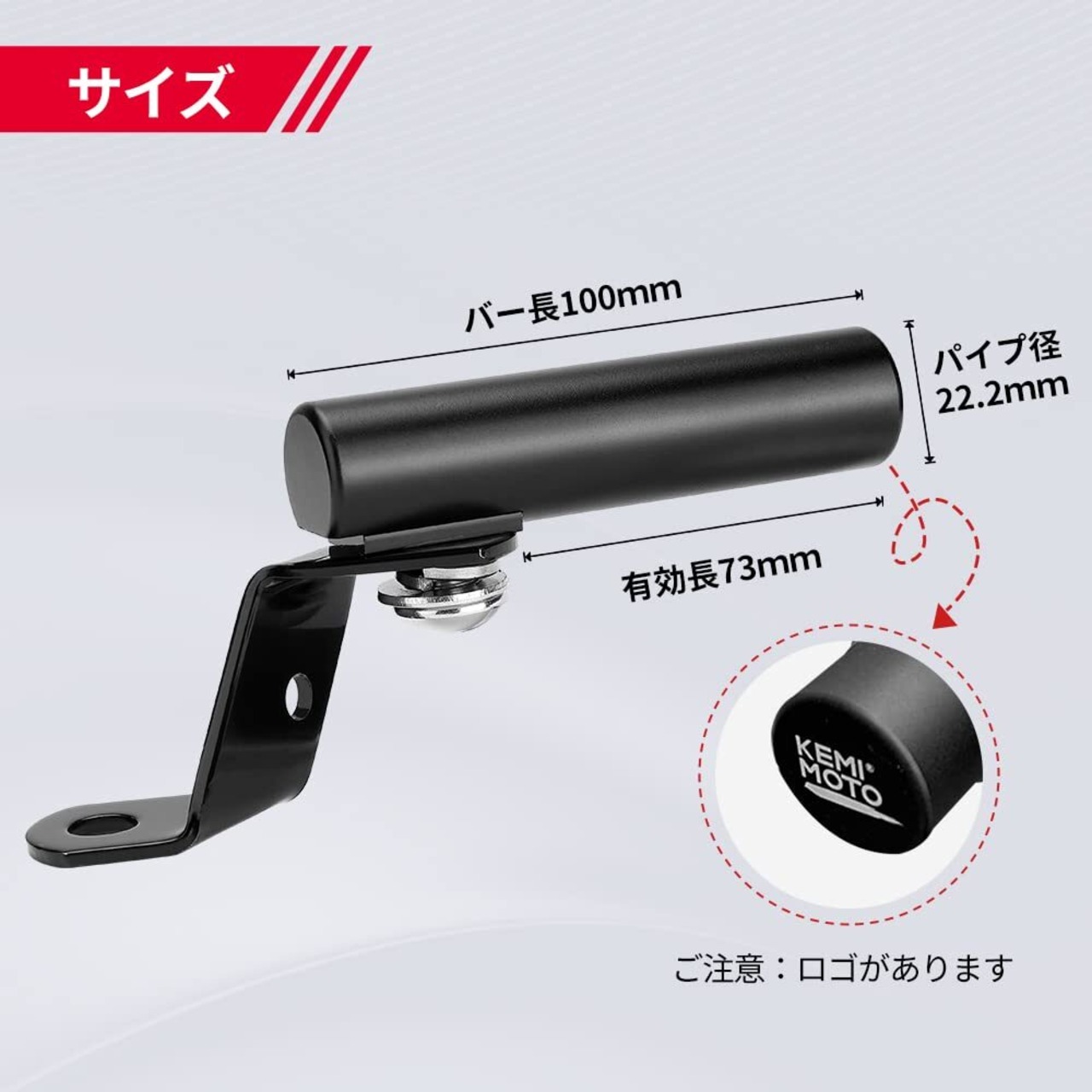 【新春セール】KEMIMOTO バイク ハンドル クランプバー 原付 マルチバー ミラーマウント 有効長さ73mm アルミ製 錆止め マルチホルダー 汎用品 ミラーに取付タイプ ミラーステー