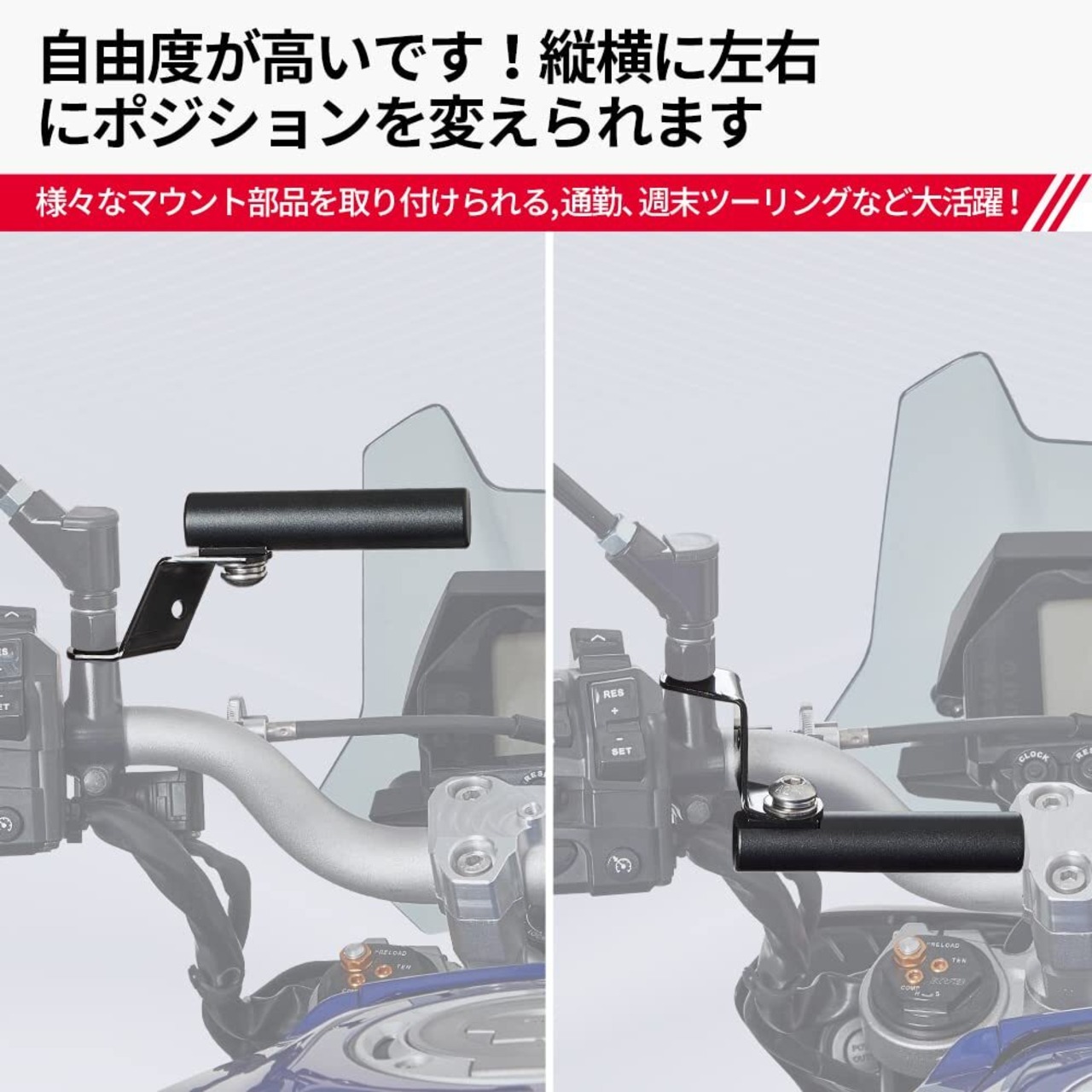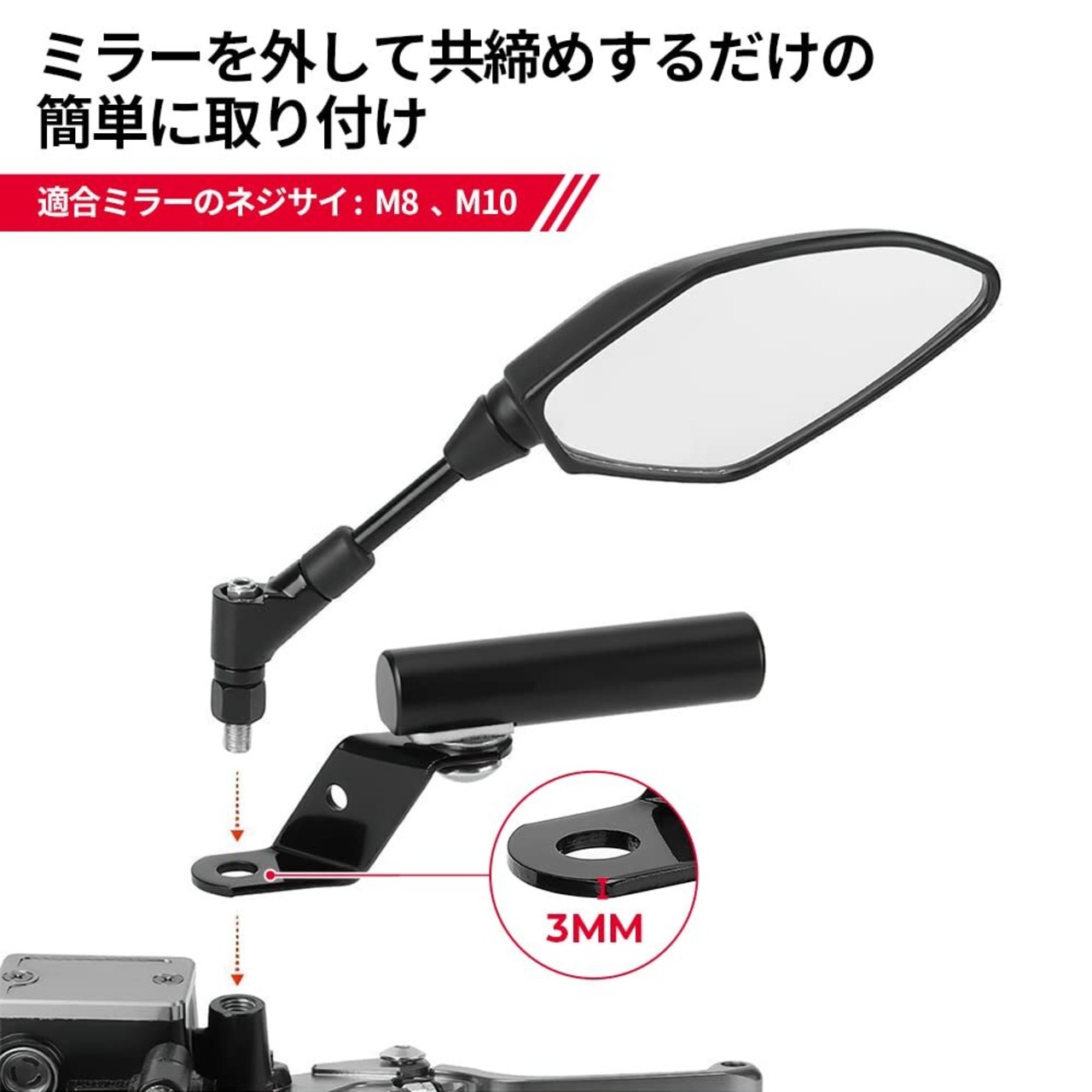 取り付け簡単:ミラーを外して共締めするだけの簡単に取り付けます。様々なマウント部品を取り付けられます。通勤、週末ツーリングなど大活躍!