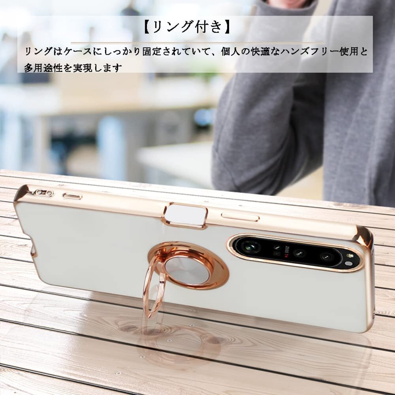 【人気商品】JOOBOY Xperia 1 IV ケース SO-51C ケース リング付き メッキ加工 レンズ保護 tpu ソフト ストラップホール付き 耐衝撃 スリム おしゃれ スマホケース 携帯カバー Xperia 1 IV メッキ加工 カバー (Xperia 1 IV ホワイト)