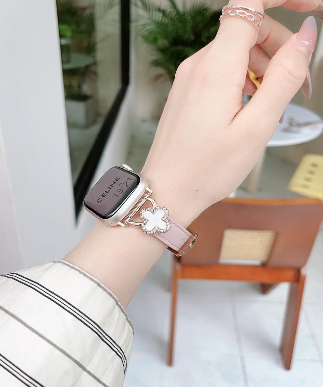 このバンドは四つ葉のクローバーがあしらわれたデザインで、見る人を惹きつける魅力があります。特別な日のお出かけや、カジュアルな普段使いにもぴったりです。