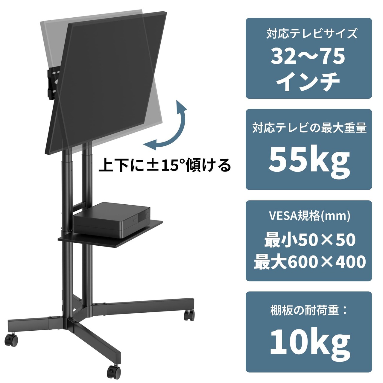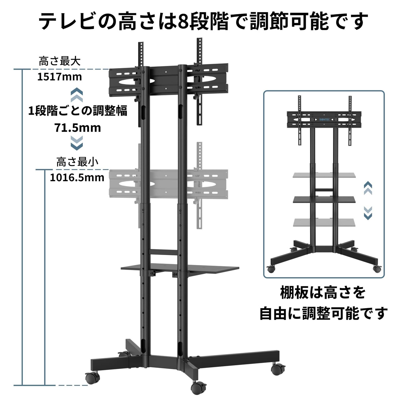 1homefurnit 移動式 壁寄せテレビスタンド 32-75インチ対応 キャスター付き VESA600x400mm 高さ調整可能 耐荷重55kg スイベル ハイタイプ テレビ台 ロータイプ対応 ブラック