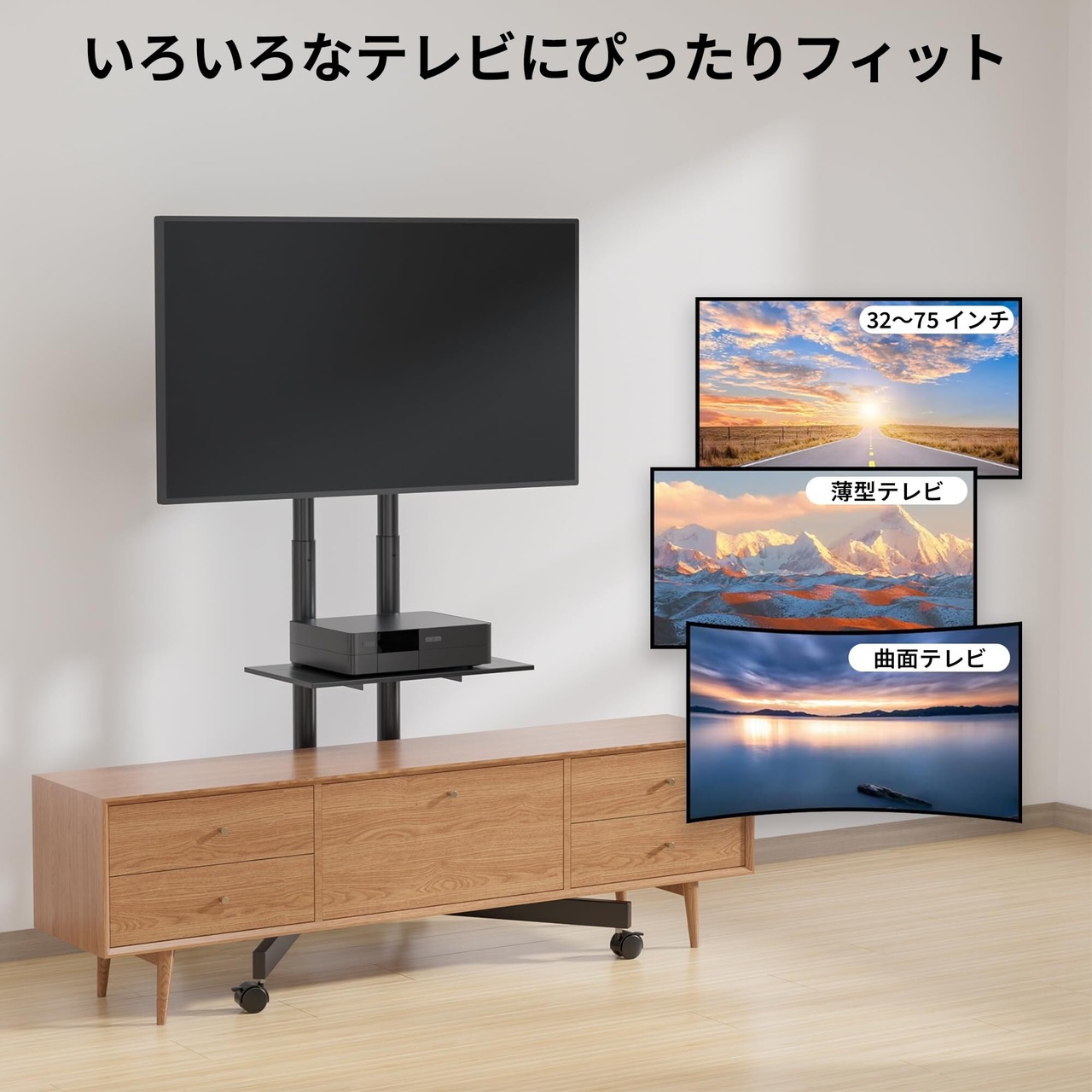 「1homefurnit 移動式 壁寄せテレビスタンド」は、スタイリッシュで機能的なデザインが特徴のテレビスタンドです!様々なサイズのテレビに対応しており、あなたのリビングやビジネスシーンに最適なアイテムです。