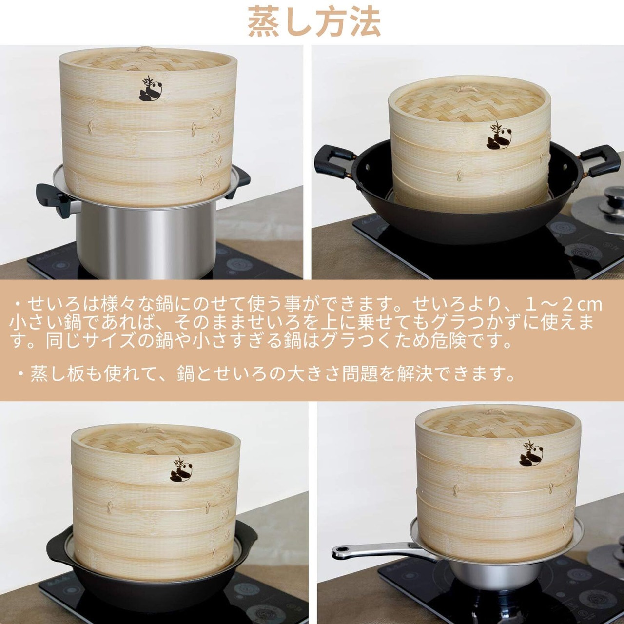 【サイズ】セイロ本体:内径19cm、外径21.2cm、内側深さ3.7cm 外側高さ6.3cm セイロ蓋:内径20.4㎝、外径21.2cm、内側深さ1.7cm外側高さ3.5㎝ 【セット内容】21cm(本体2個・蓋1個)セット