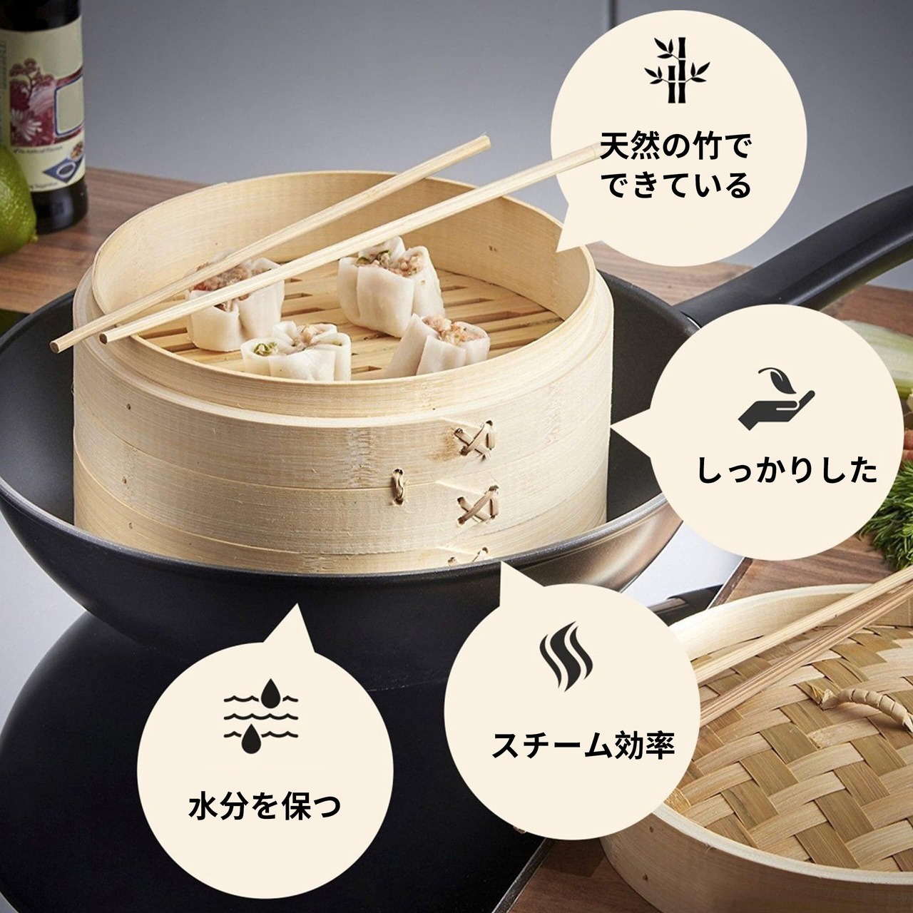 この竹セイロは、天然素材の竹を使用しており、熱に強く、長期間の使用でも安心の耐久性を誇ります。蒸気がしっかりと通るため、ふっくらとした仕上がりを実現します。