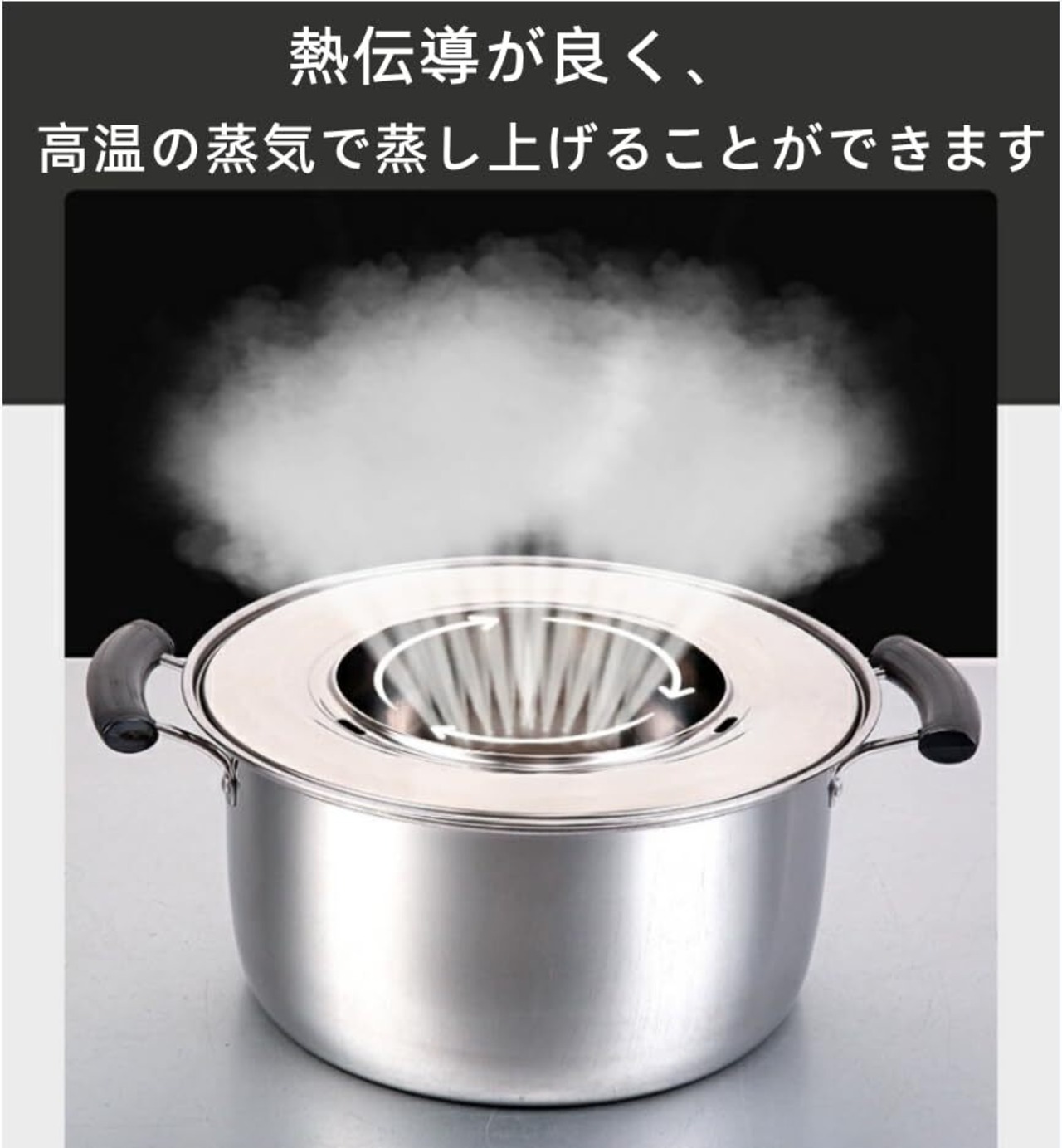 本受け台は、高品質なステンレスを使用しており、耐久性に優れているため、長くお使いいただけます。また、熱伝導が良く、均一な蒸気を食材に行き渡らせることで、ふっくらとした仕上がりを実現します。